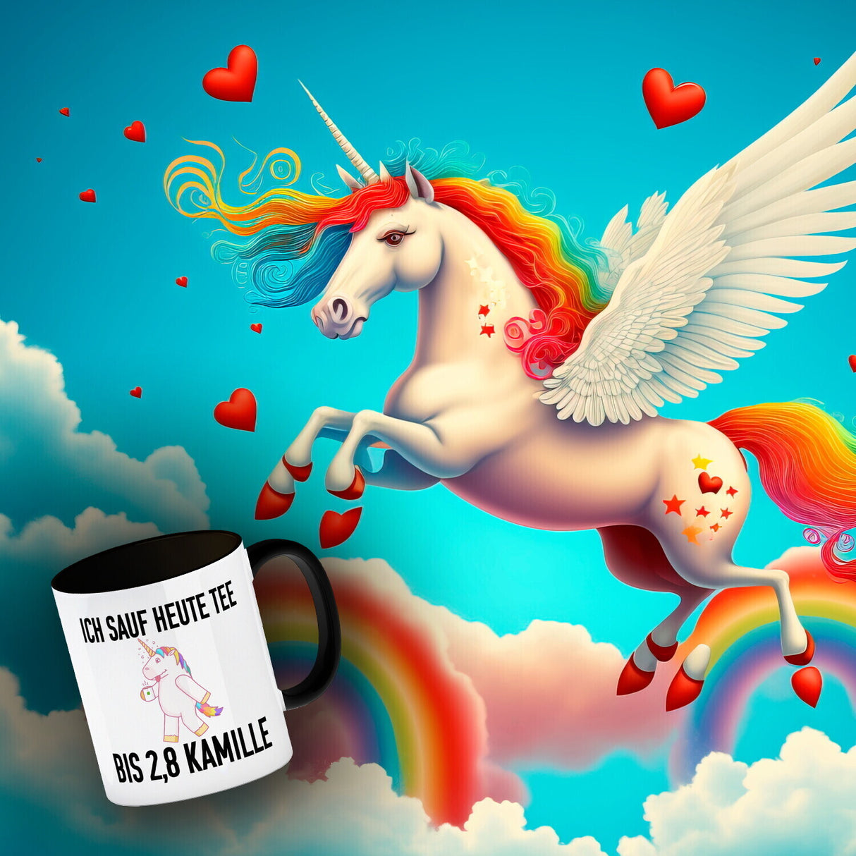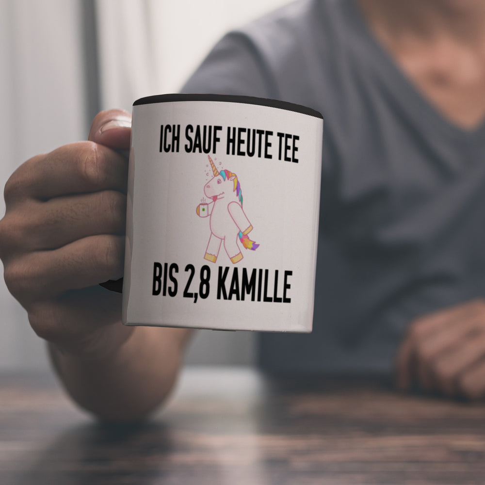 Ich sauf heute Tee bis 2,8 Kamille Kaffeebecher mit Einhorn