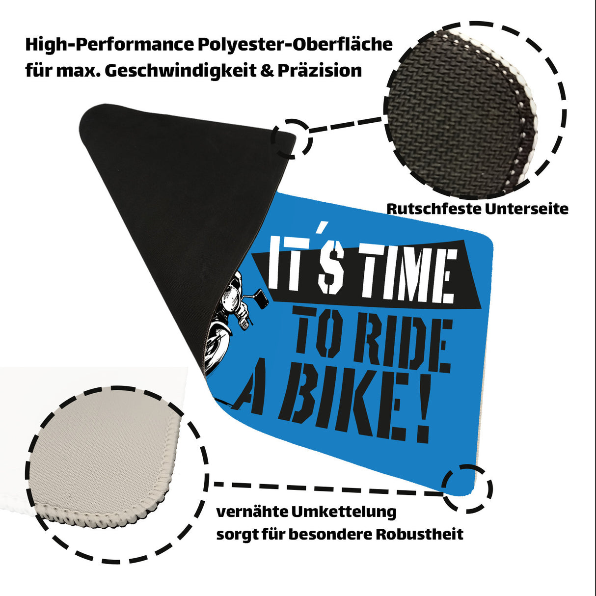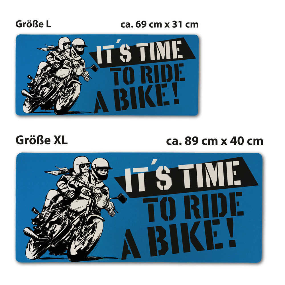 • 1x Its time to ride a bike! Schreibtischunterlage 69x31cm XXL Mauspad mit Retro Biker in der gewählten Größe