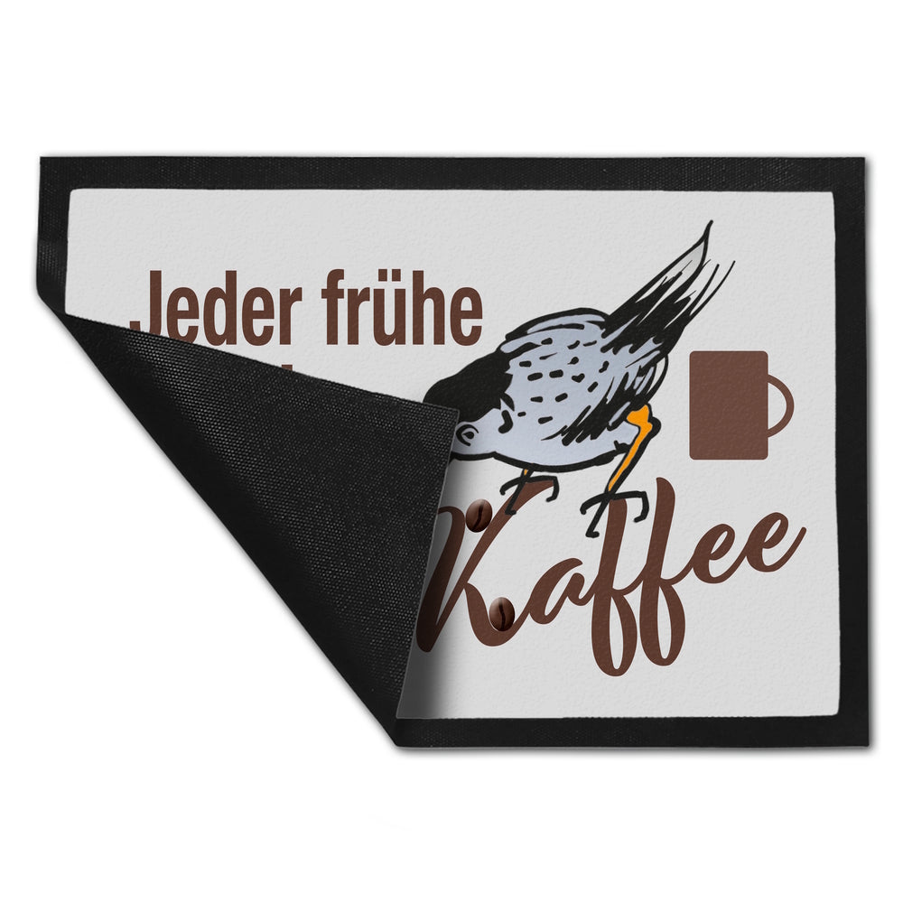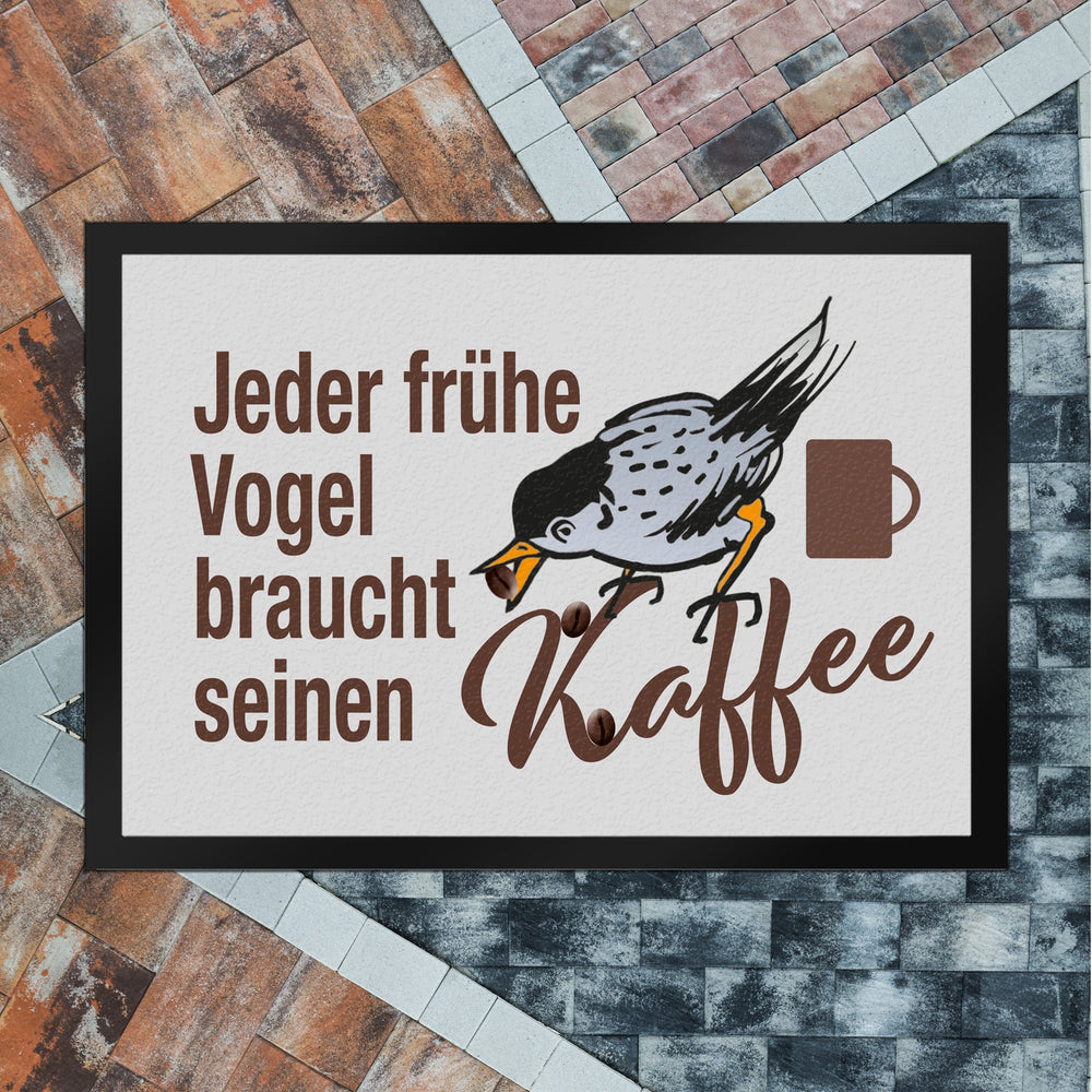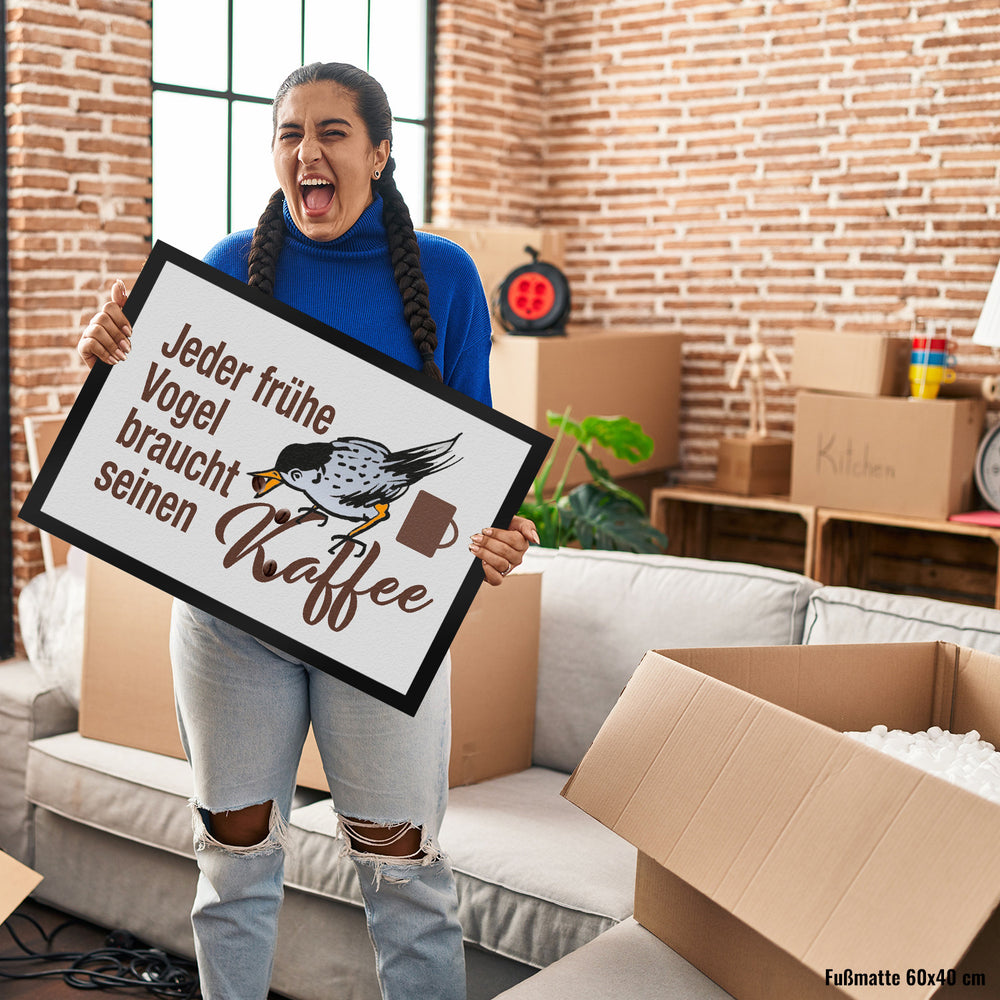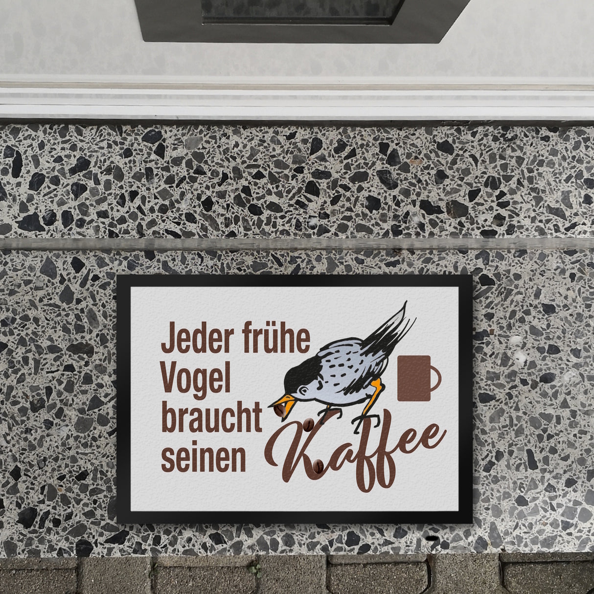 Jeder frühe Vogel braucht Kaffee Fußmatte in 35x50 cm