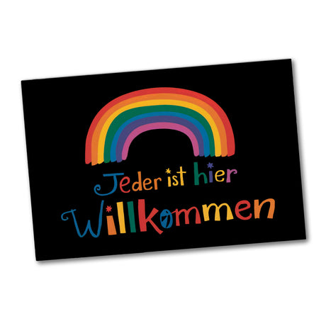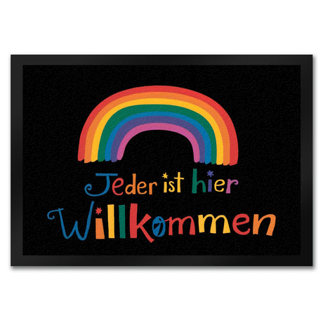 Jeder ist hier Wilkommen Regenbogen Fußmatte in 35x50 cm