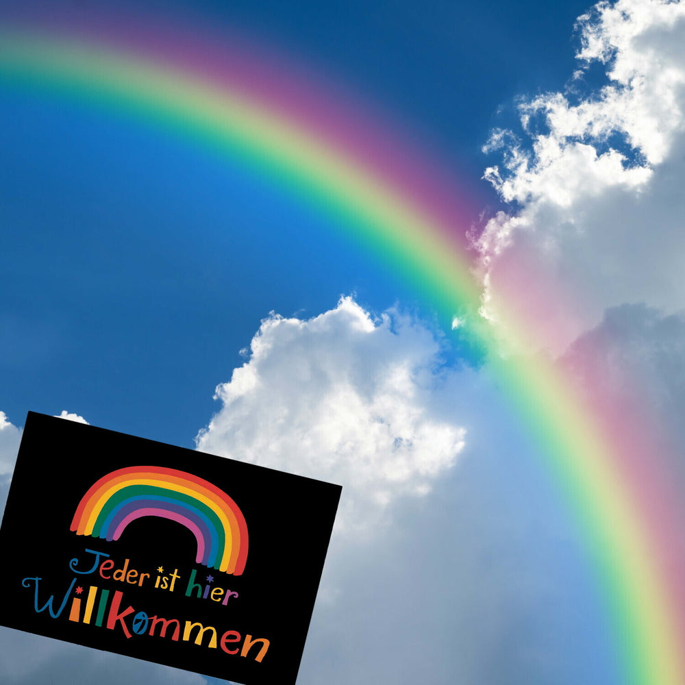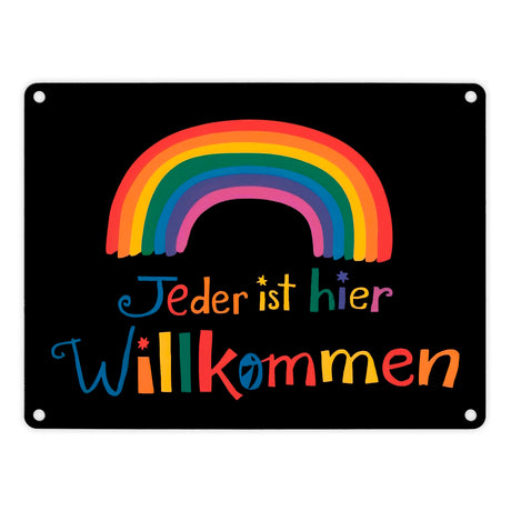 Jeder ist hier Willkommen Regenbogen Metallschild in 15x20 cm