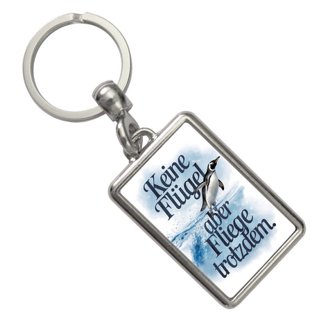Pinguin Sprung aus dem Wasser Fliege trotzdem Schlüsselanhänger
