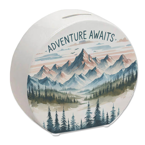Bergpanorama Spardose mit Spruch Adventure Awaits