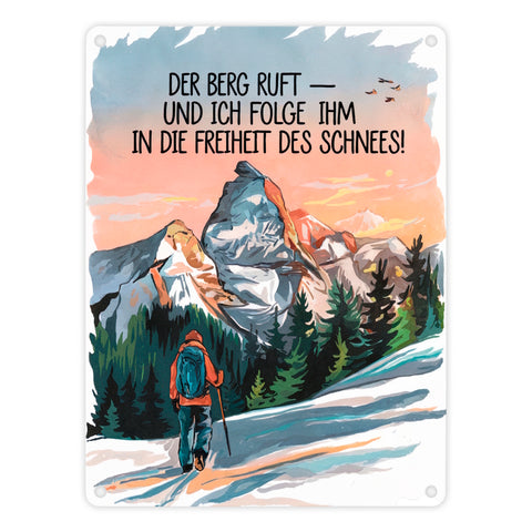 Berggipfel mit Wanderer - Der Berg ruft Metallschild in 15x20 cm