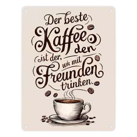 Kaffeetasse mit Zitat Metallschild in 15x20 cm - Bester Kaffee mit Freunden