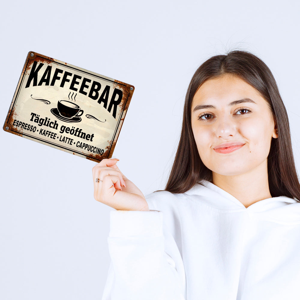 - 1x Kaffeebar Metallschild in 15x20 cm im Vintage-Stil in der gewählten Größe