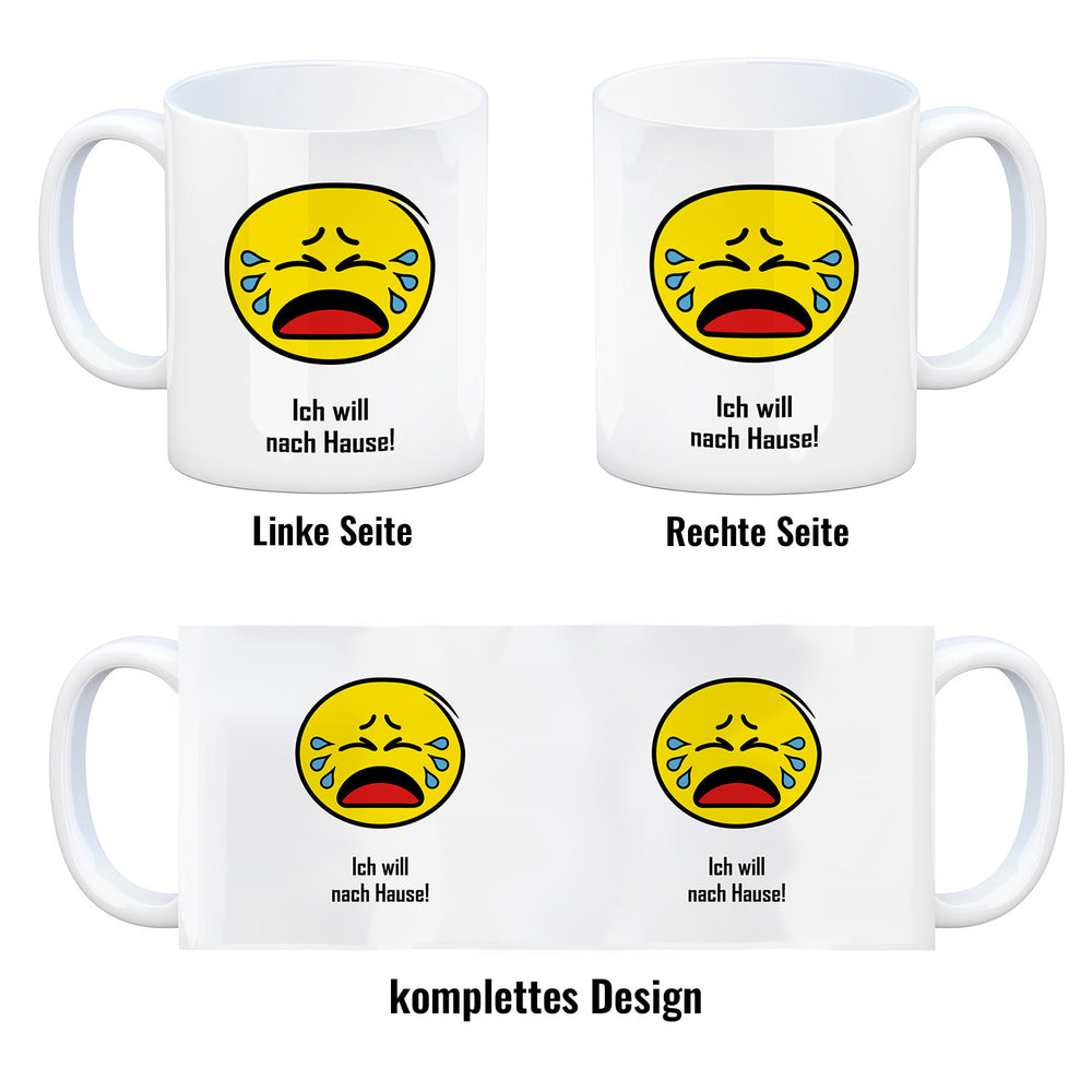 • Lieferumfang: 1x Kaffeebecher mit Spruch: Ich will nach Hause!