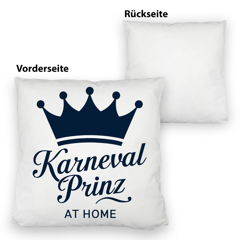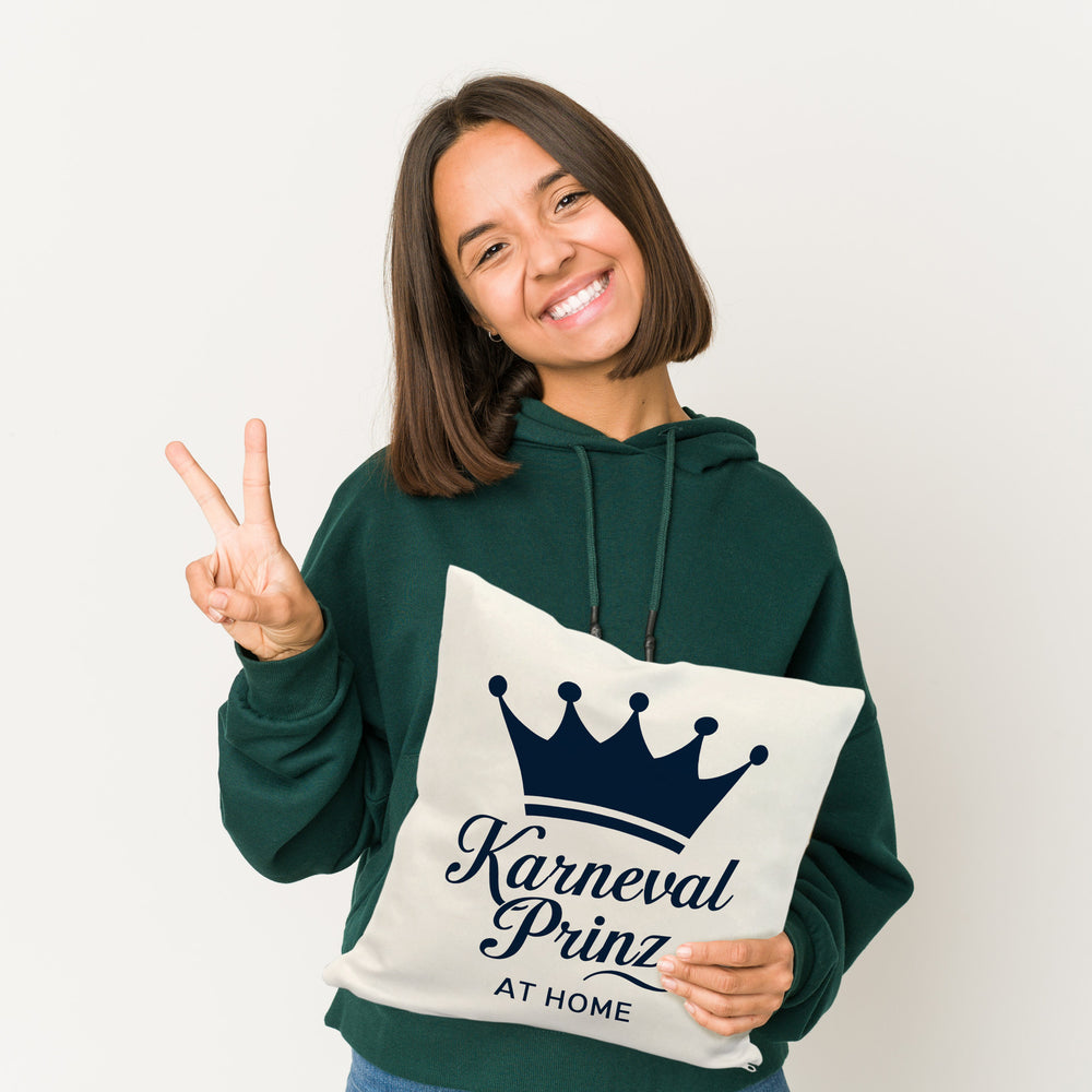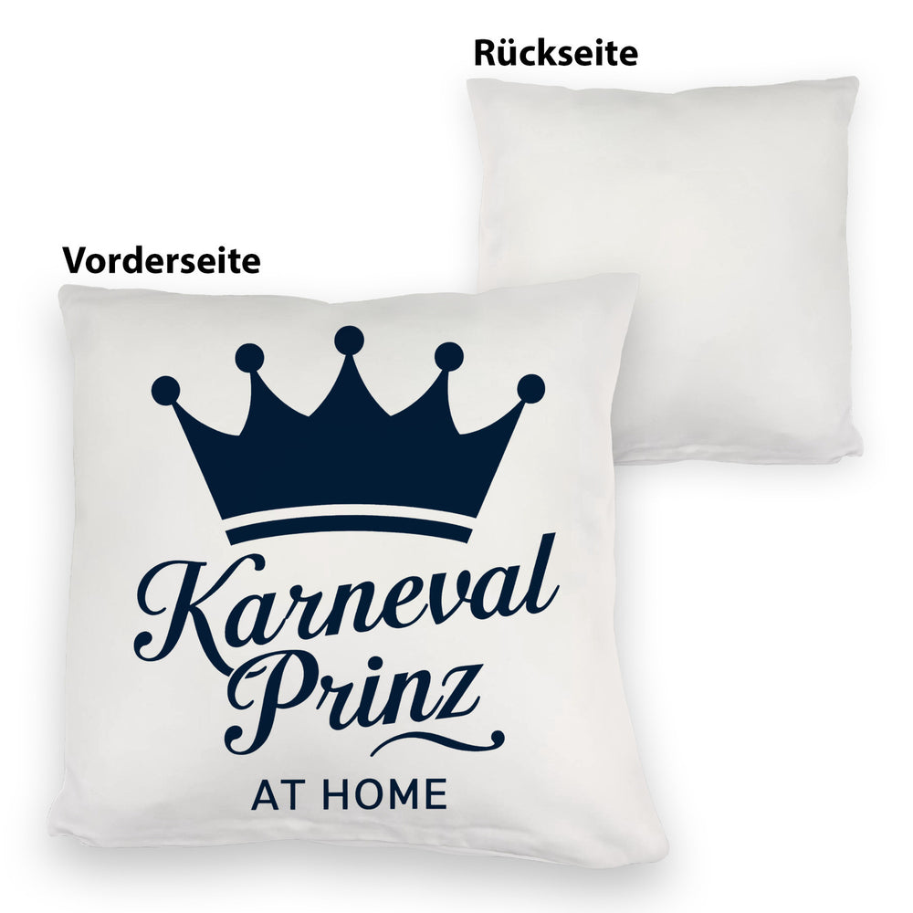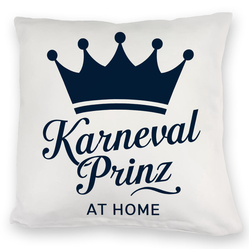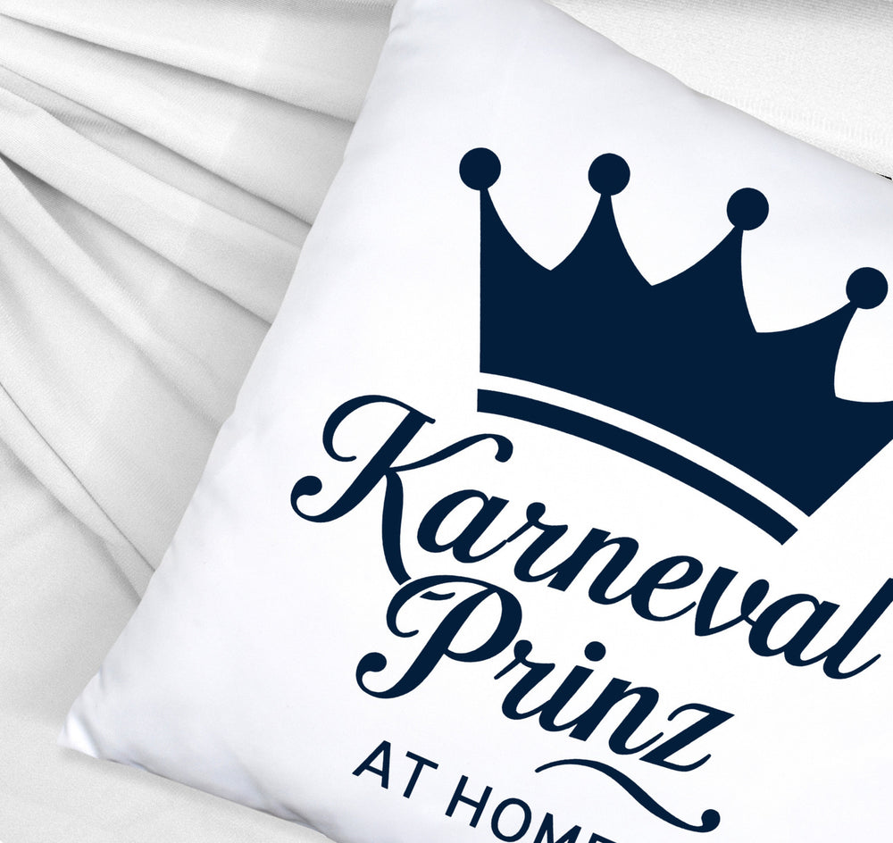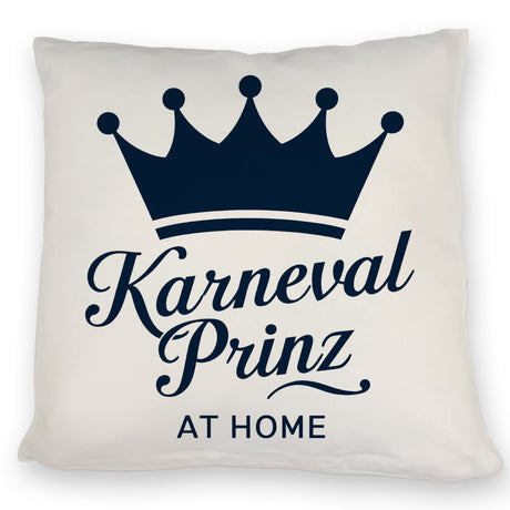 - Das Königliche Krone Kissen ist ein wahrer Hingucker! Mit einer stilisierten Krone in edlem Marineblau auf weißem Hintergrund zieht es alle Blicke auf sich. Der elegante Schriftzug "KARNEVAL PRINZ" in Kursivschrift und das kräftige "AT HOME" runden das Design ab. Ein Muss für alle Karnevals- und Deko-Liebhaber!