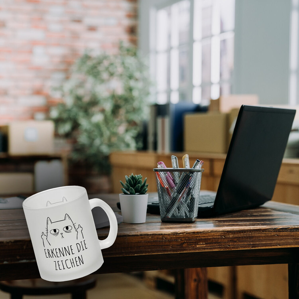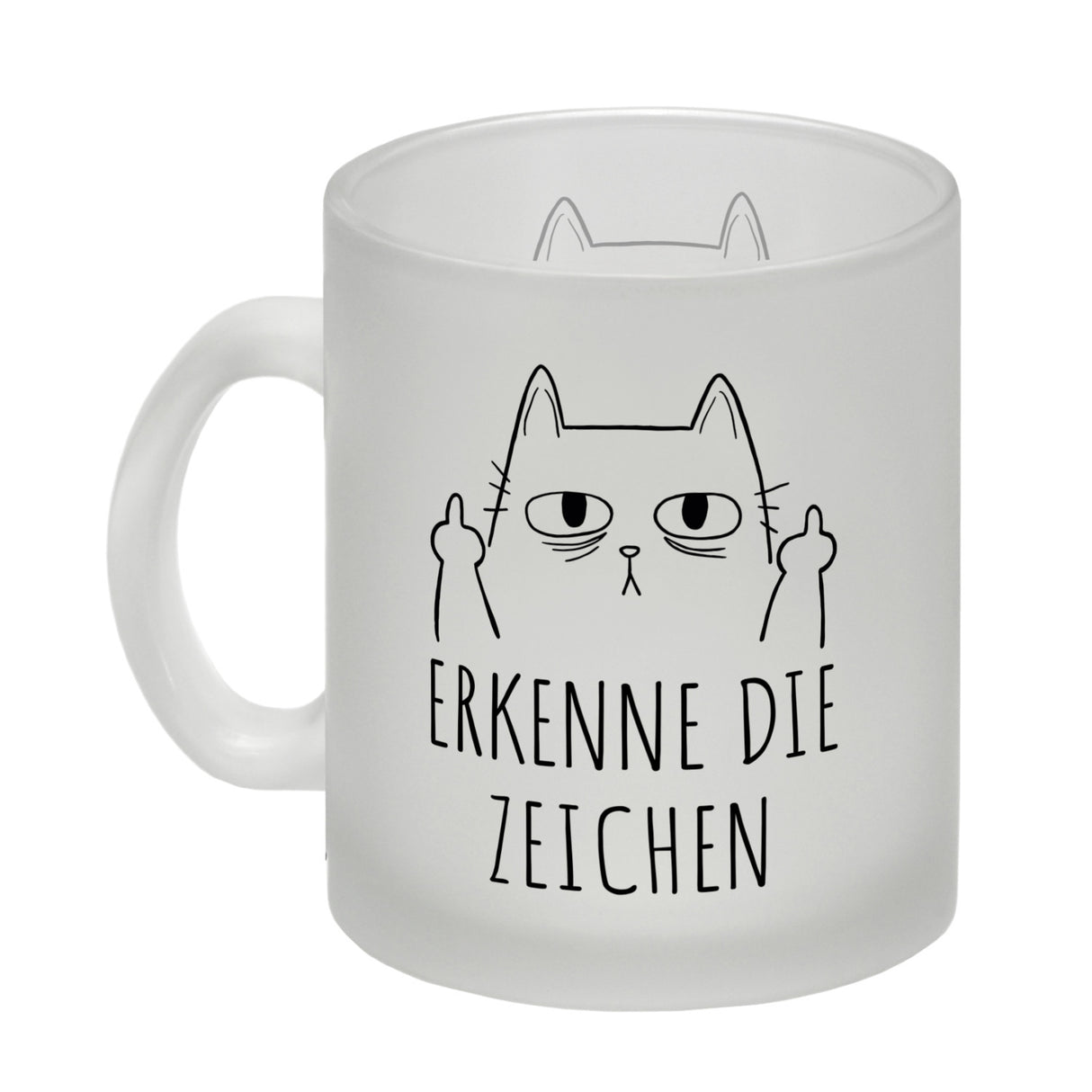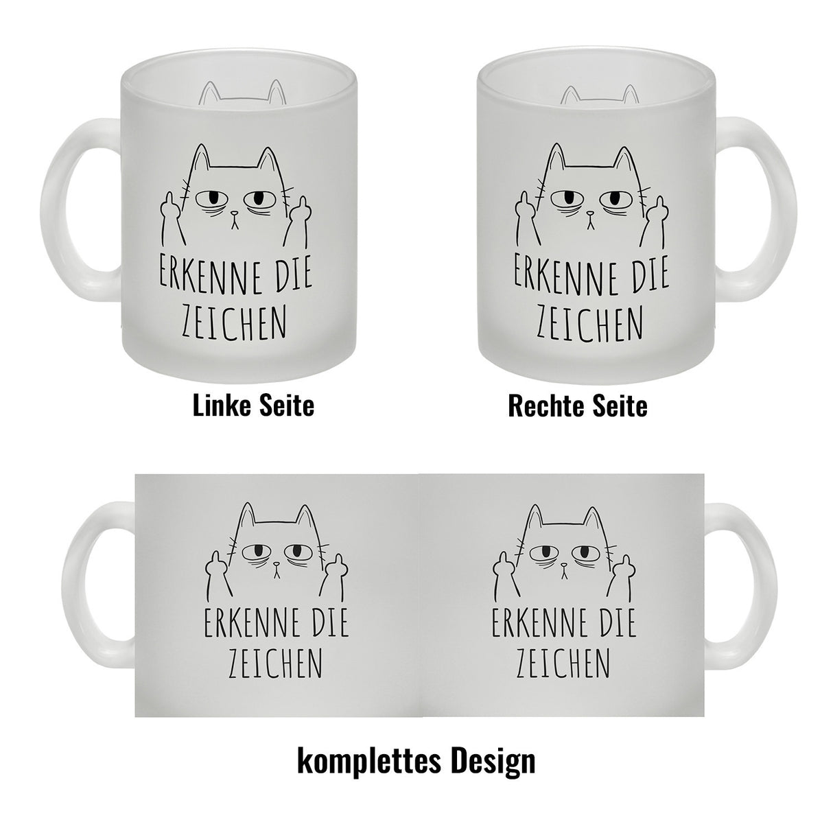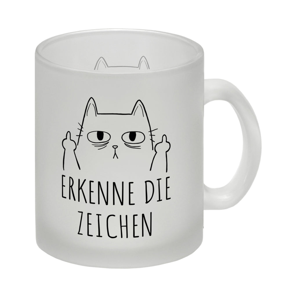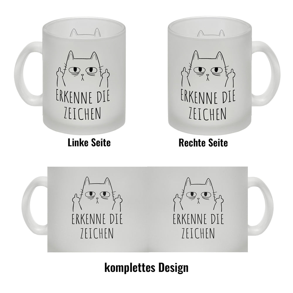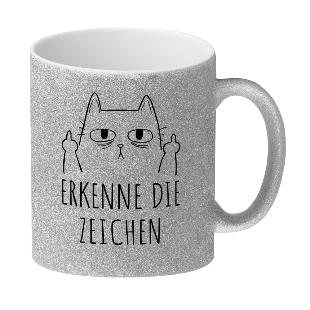 - 1x Katze mit Mittelfinger Kaffeebecher mit Spruch Erkenne die Zeichen in der gewählten Ausführung