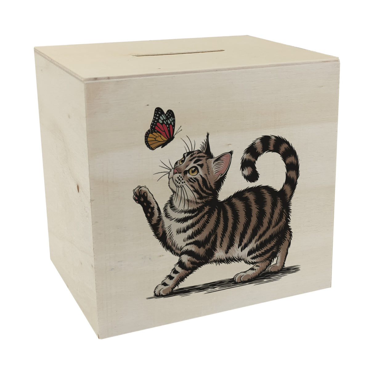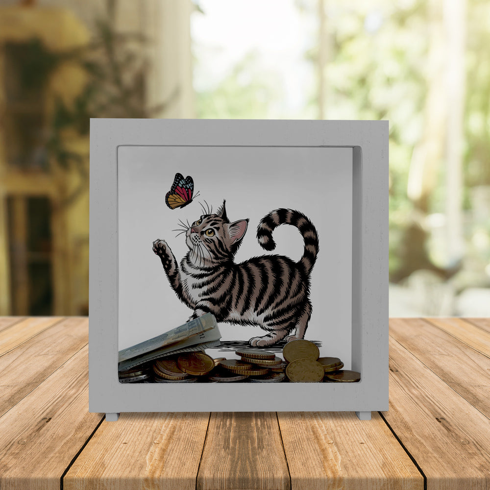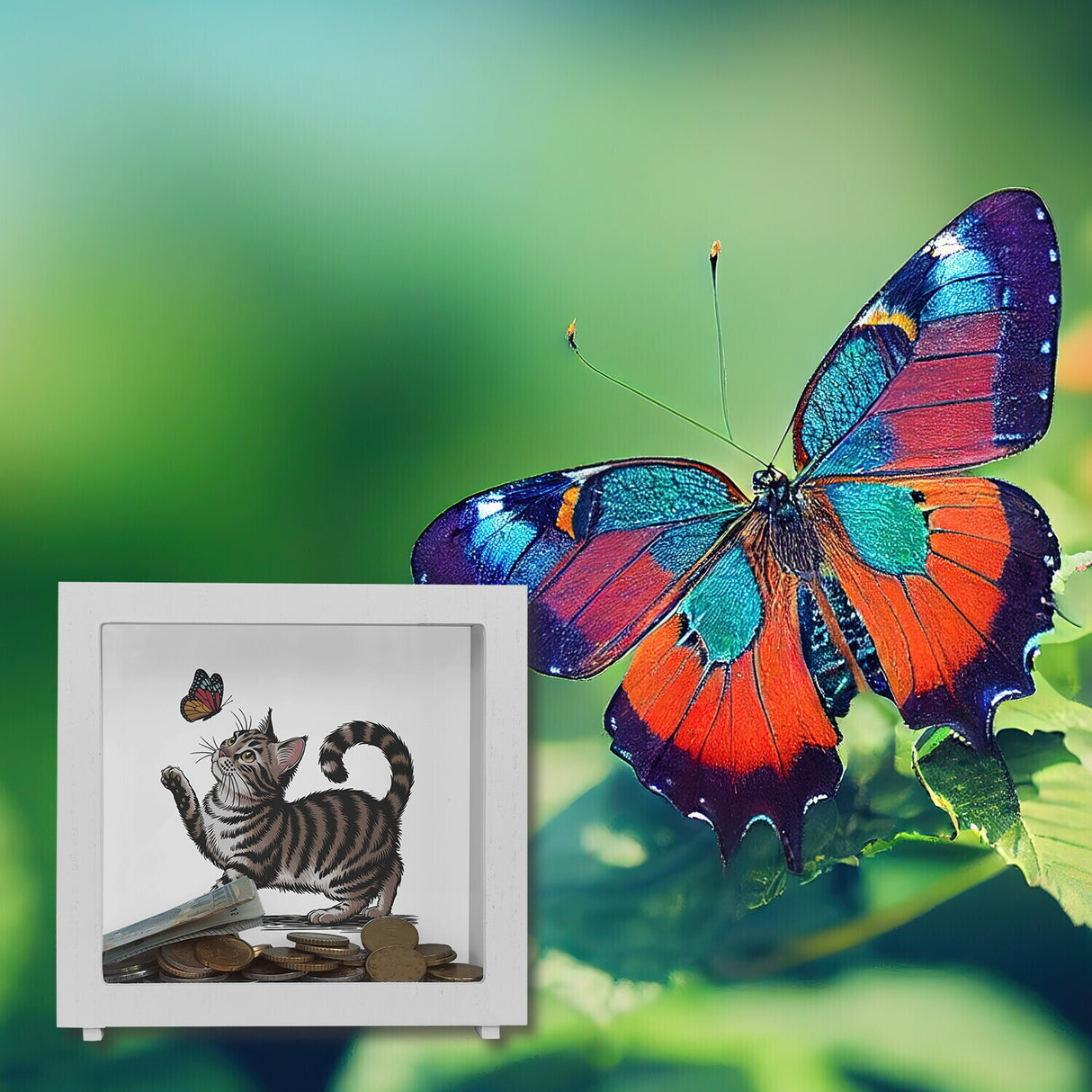 Katze mit Schmetterling Spardose für Tierliebhaber