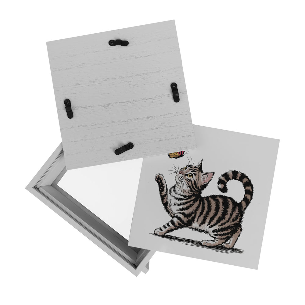- Die niedliche Spardose zeigt eine getigerte Katze, die voller Neugierde einen bunten Schmetterling betrachtet. Mit erhobener Pfote und gekringeltem Schwanz ist sie ein echter Hingucker. Der schlichte weiße Hintergrund lässt das verspielte Motiv besonders gut zur Geltung kommen und verleiht jeder Münzsammlung Charme.