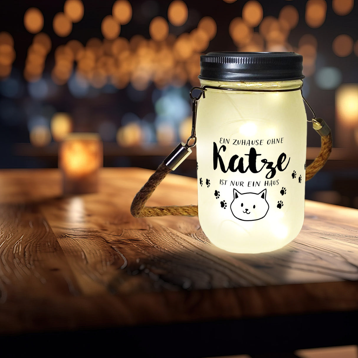 Katze Solarlicht mit Spruch Ein Zuhause ohne Katze ist nur ein Haus