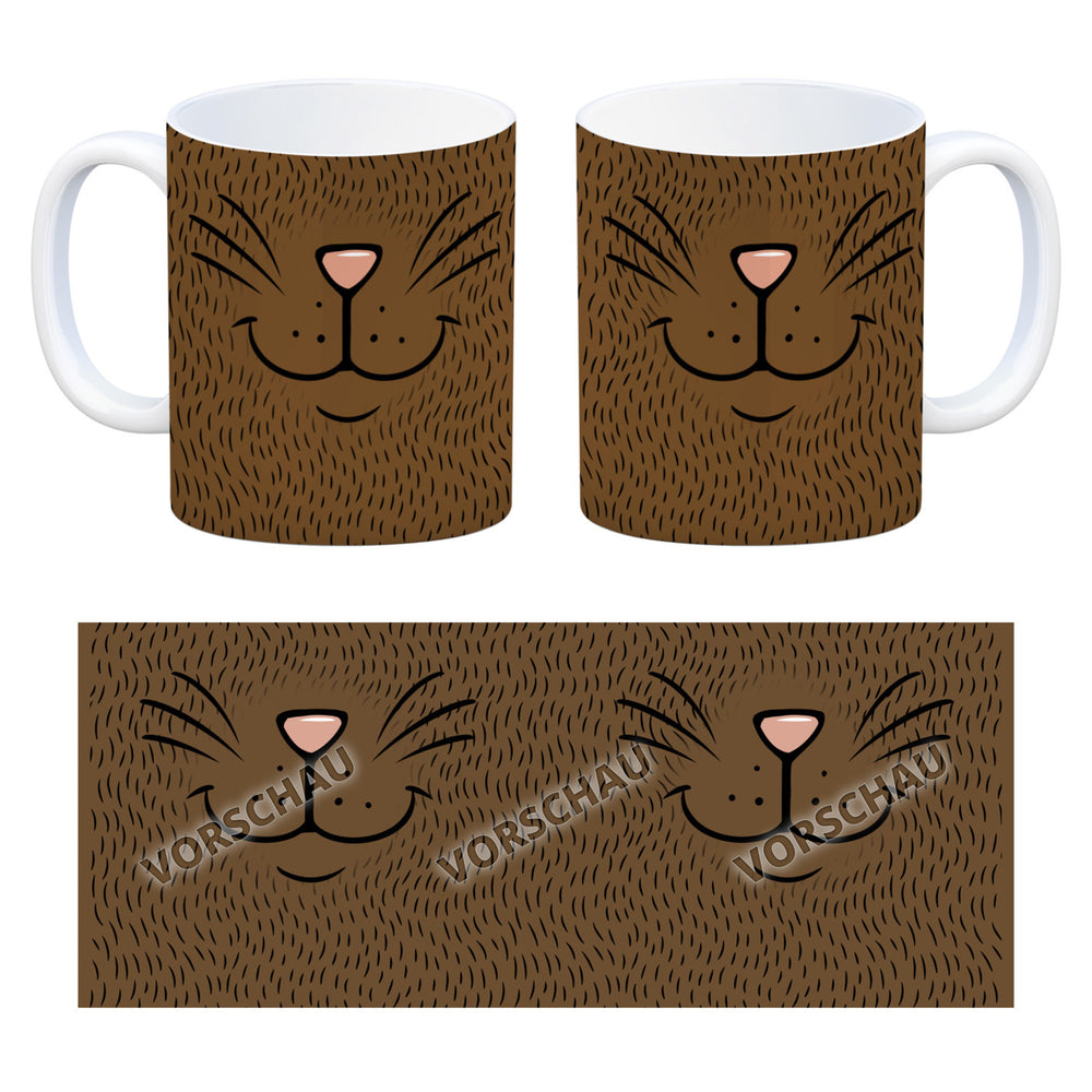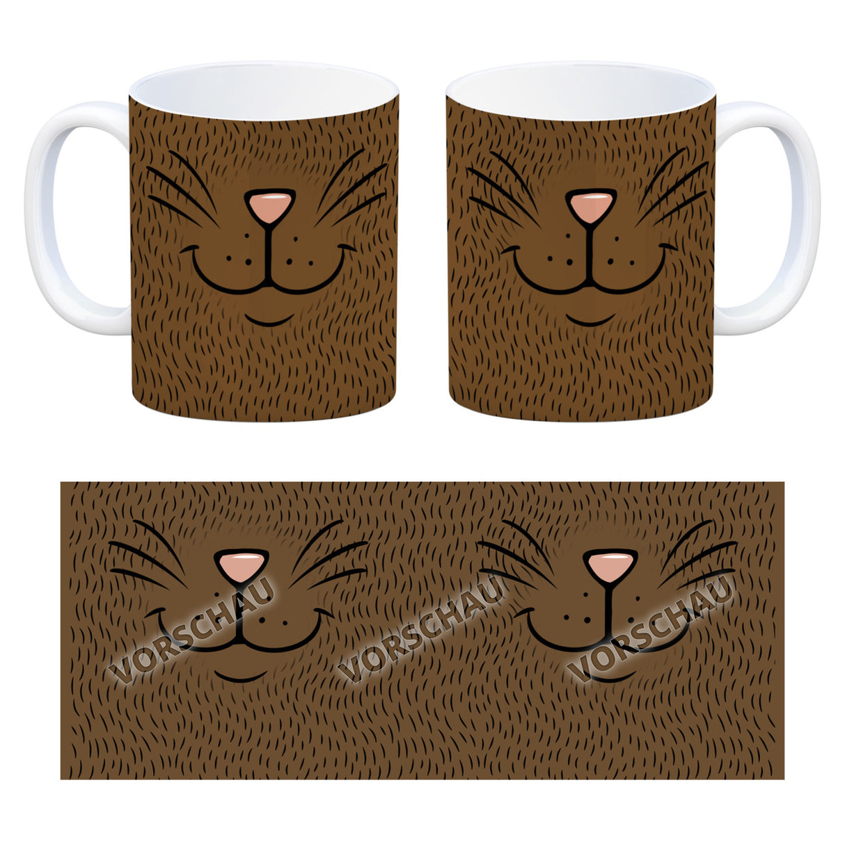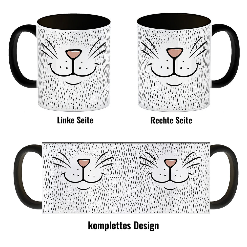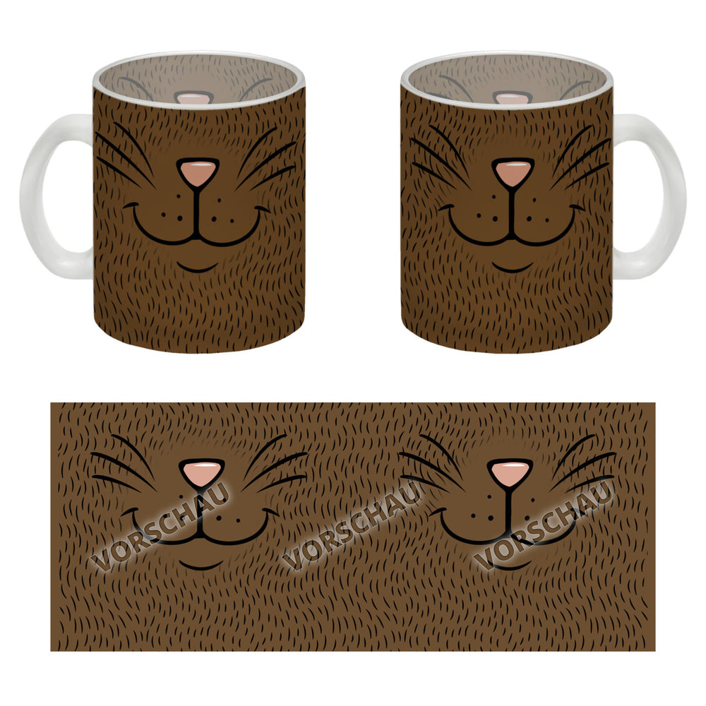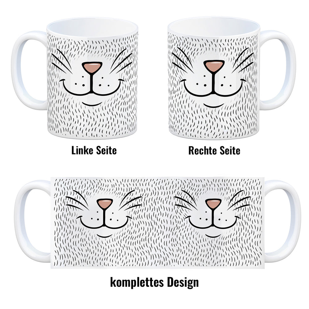 - 1x Katzengesicht Kaffeebecher mit süßem Lächeln einer Katze in der gewählten Ausführung