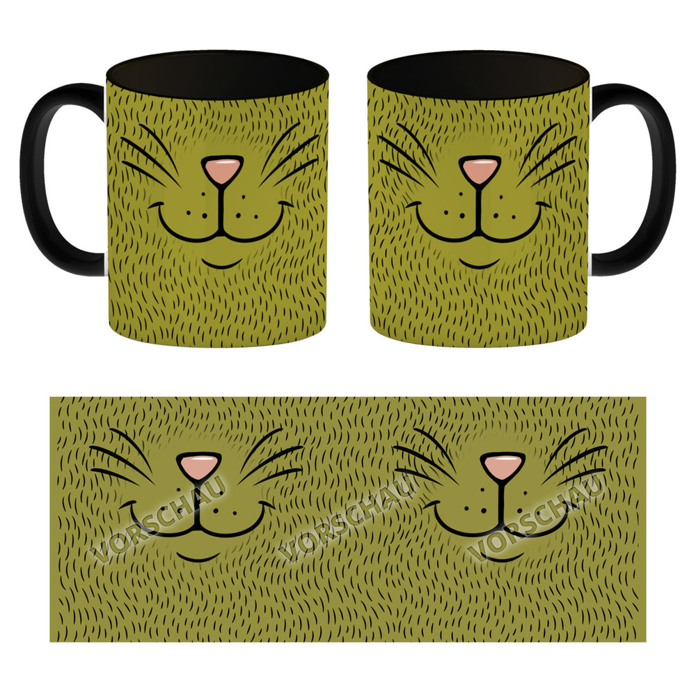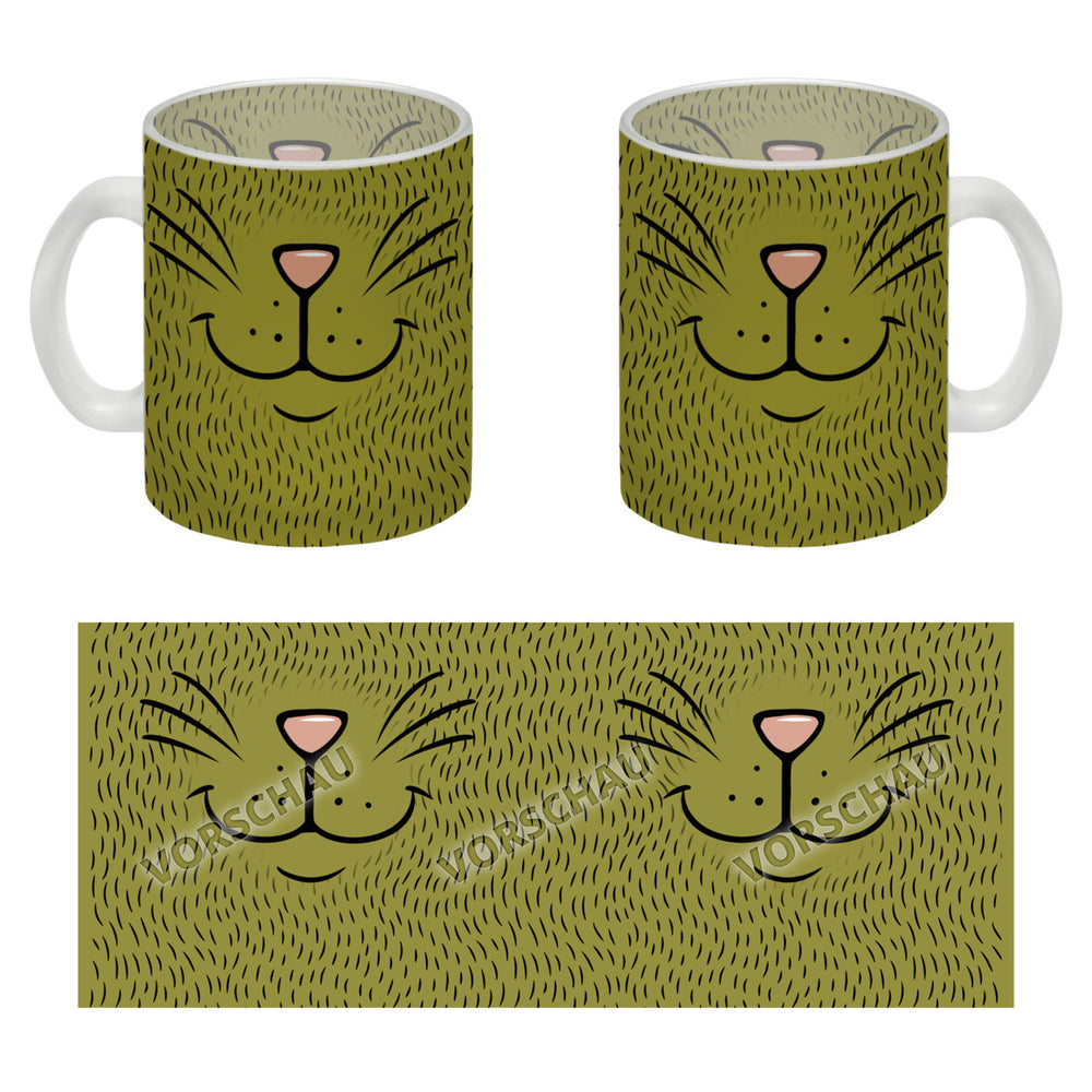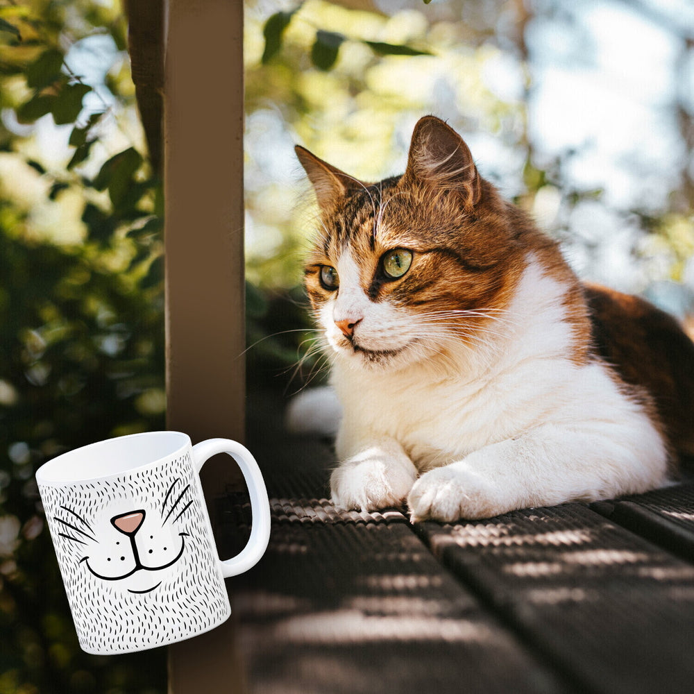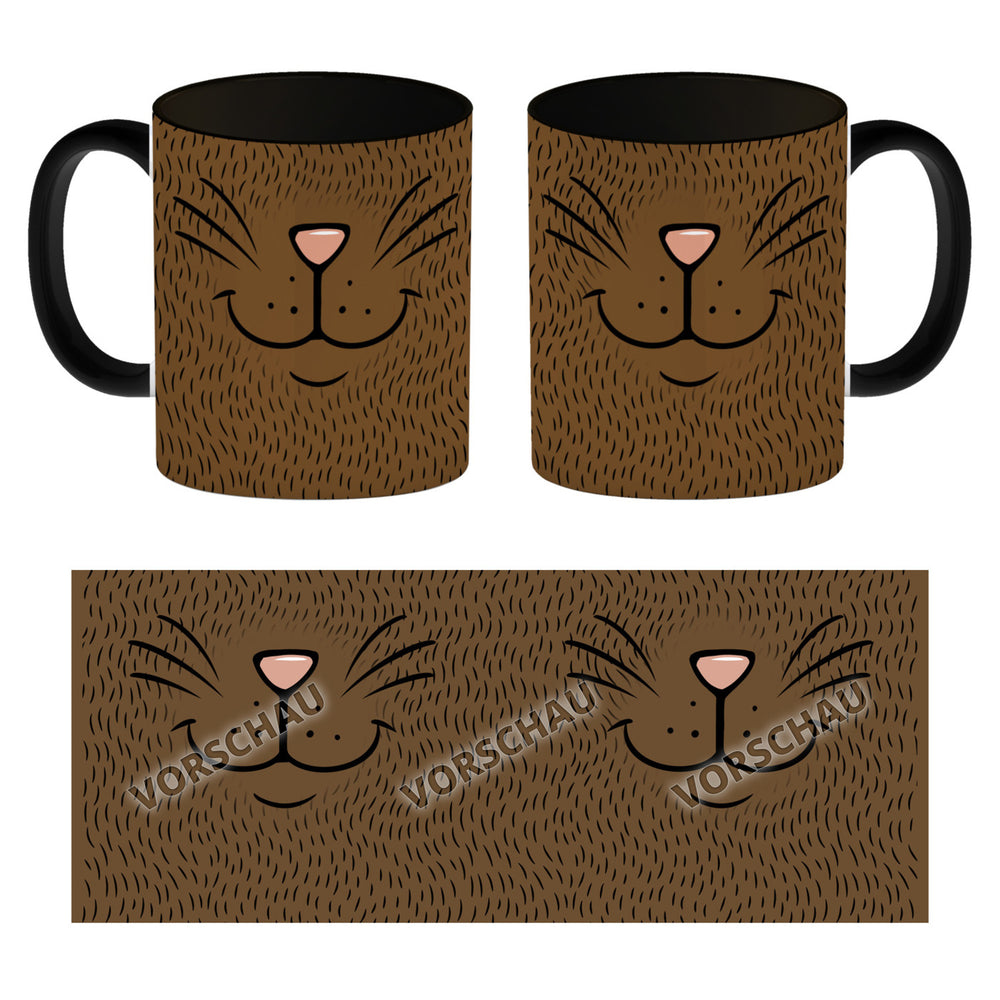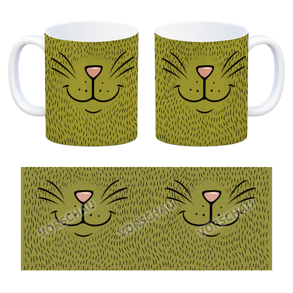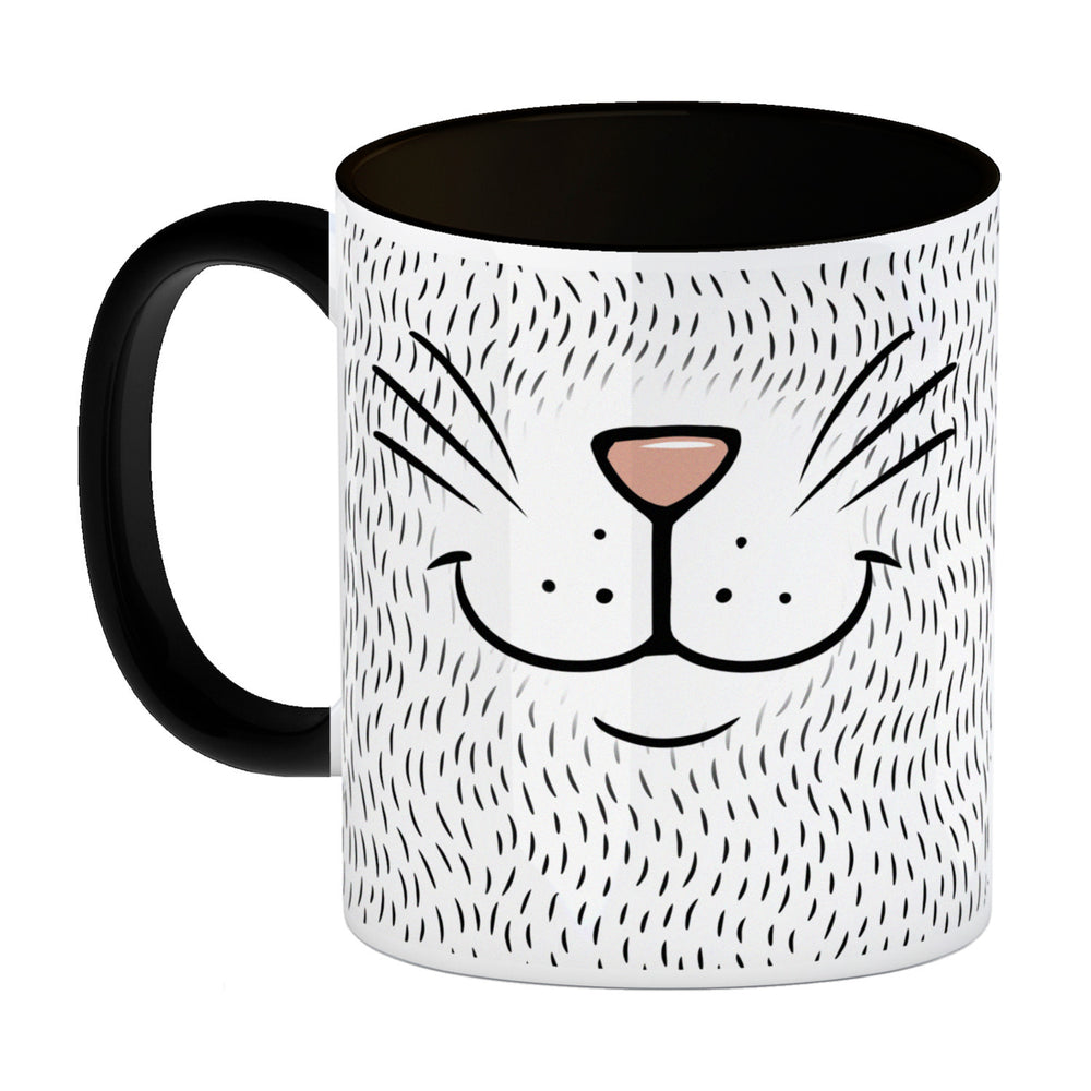 - 1x Katzengesicht Kaffeebecher mit süßem Lächeln einer Katze in der gewählten Ausführung