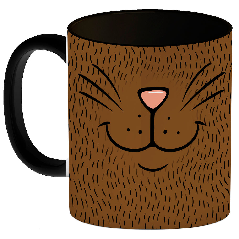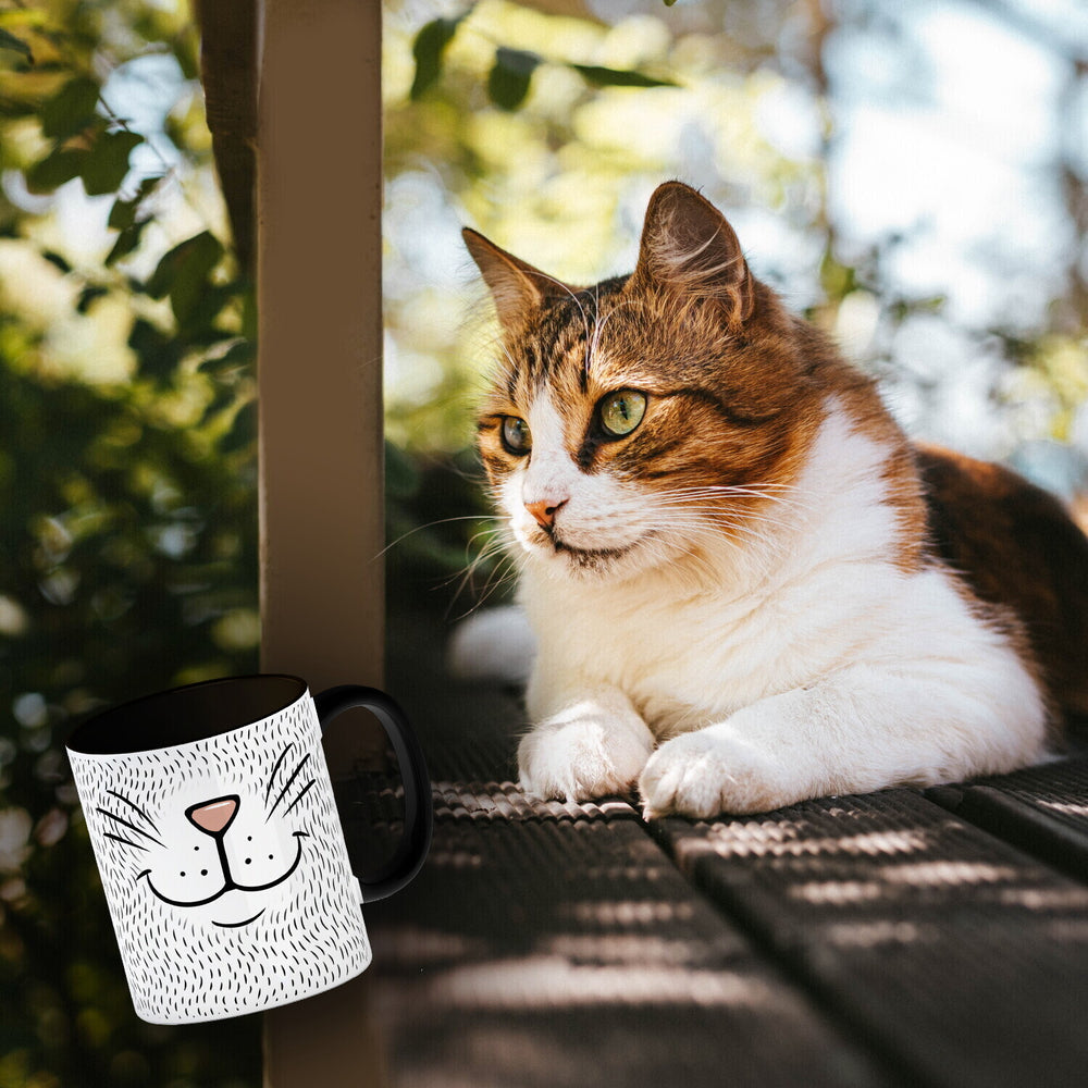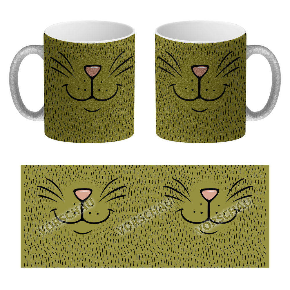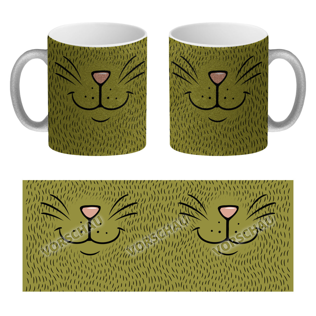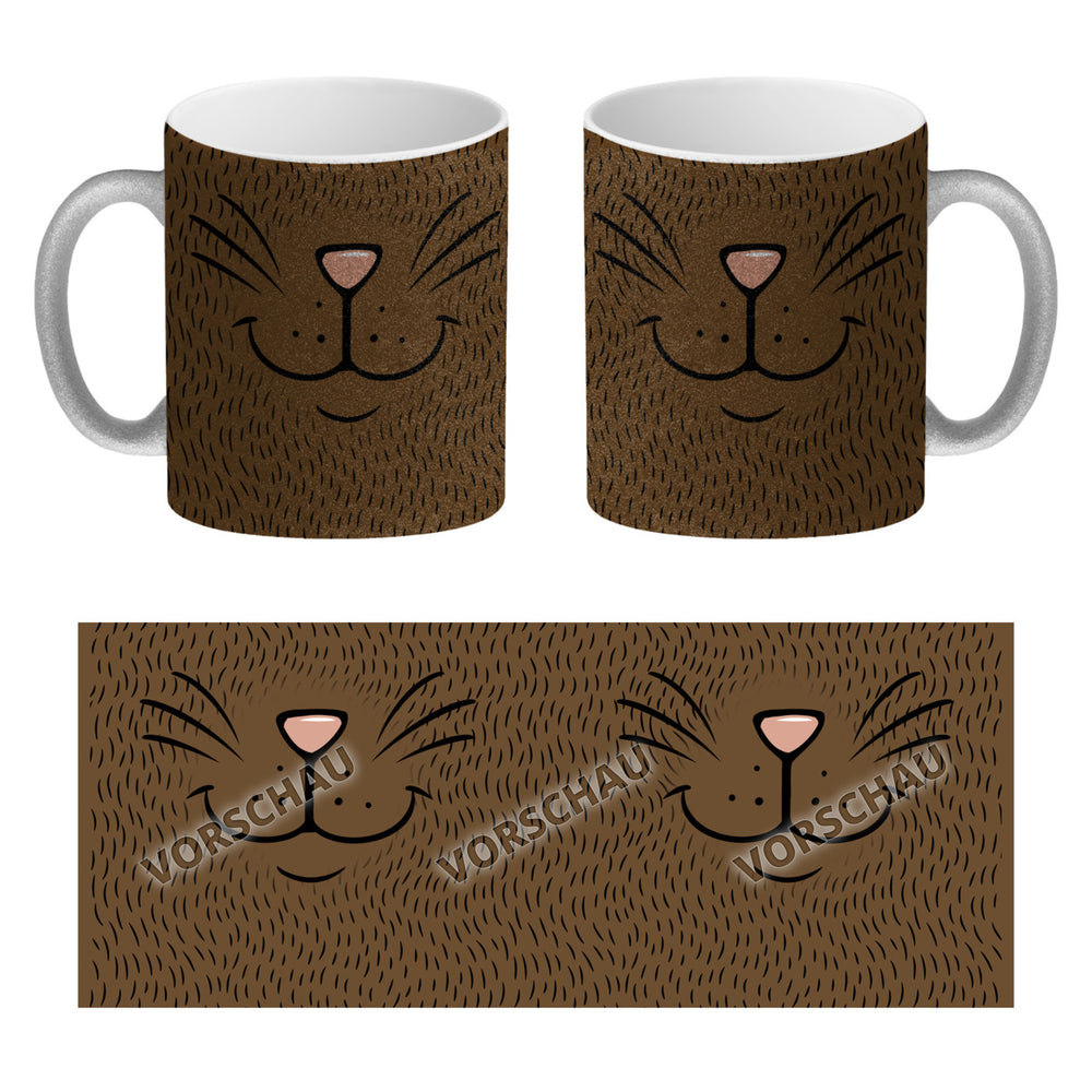 - 1x Katzengesicht Kaffeebecher mit süßem Lächeln einer Katze in der gewählten Ausführung