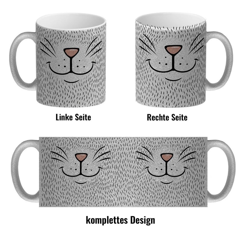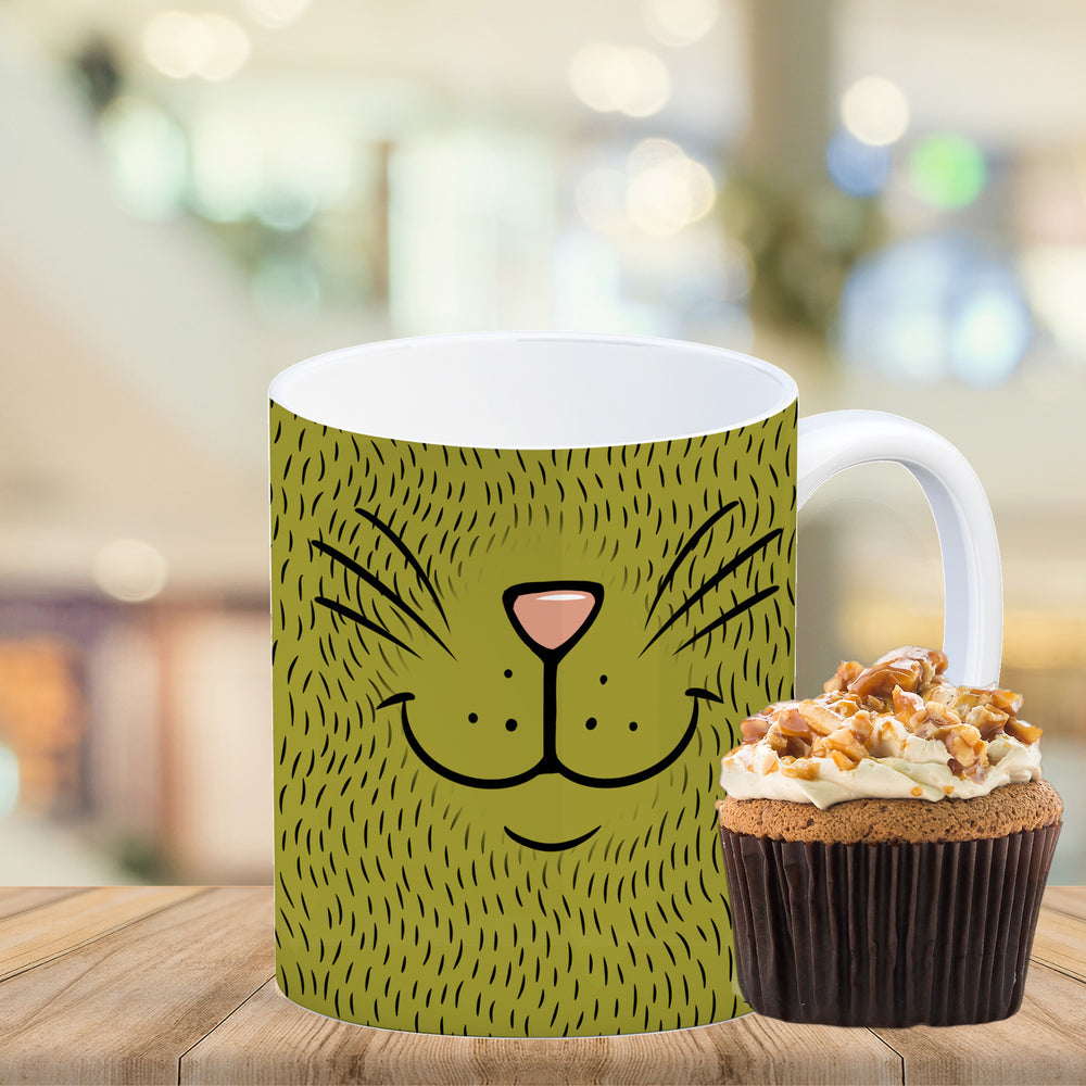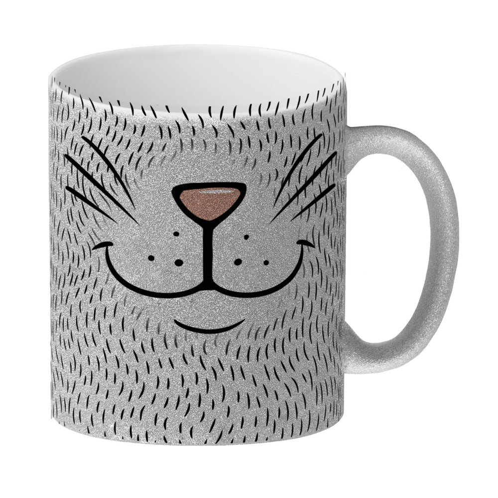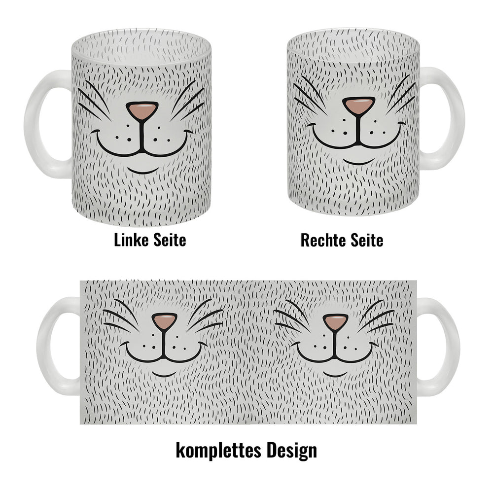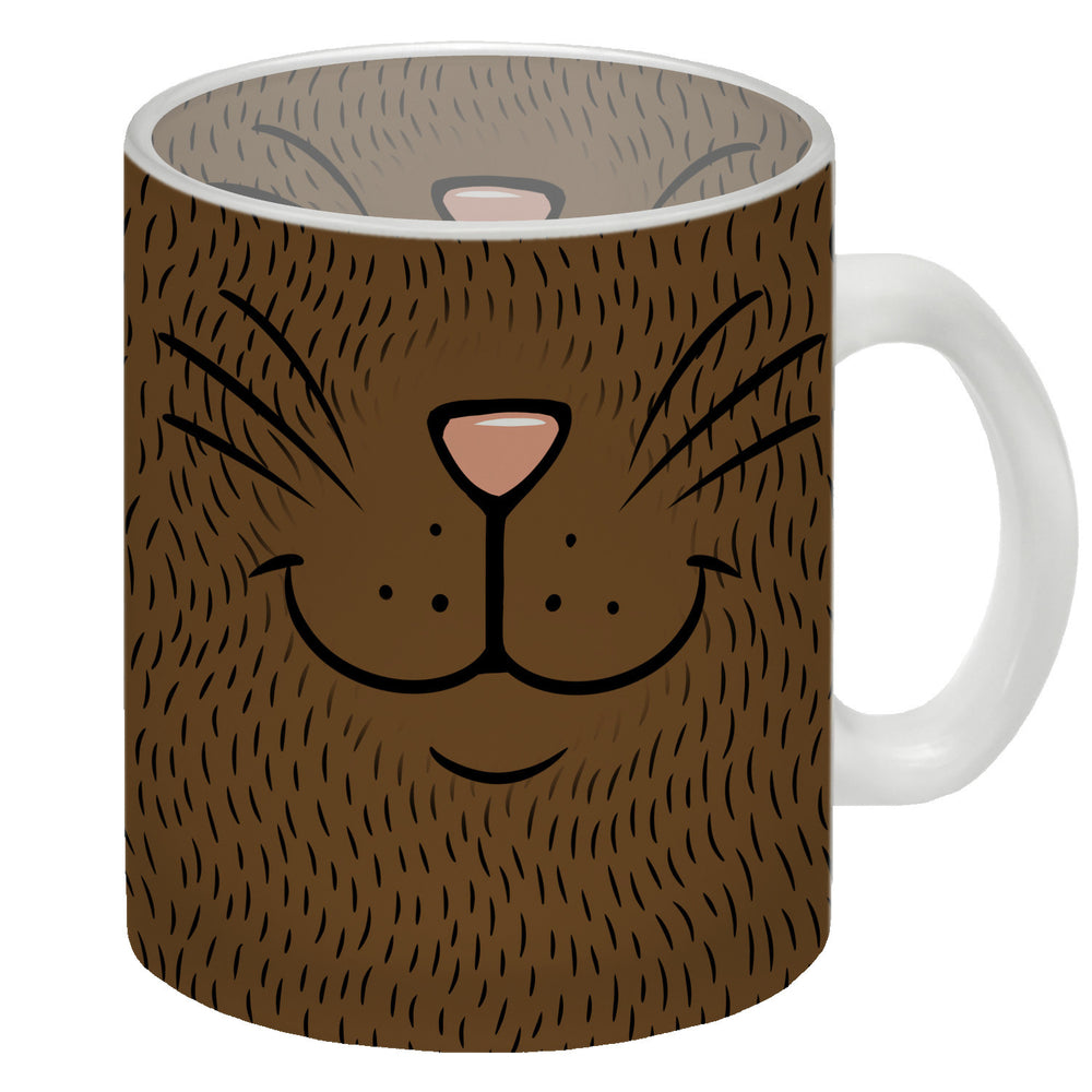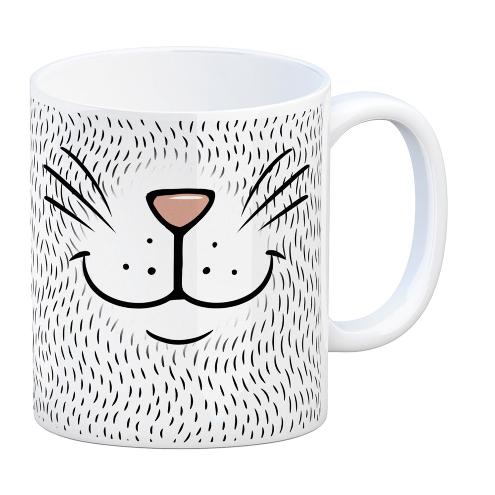- 1x Katzengesicht Kaffeebecher mit süßem Lächeln einer Katze in der gewählten Ausführung