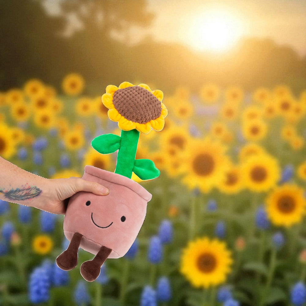 - Dieses Kuscheltier ist der Inbegriff von "kawaii". Ein grüner, brauner und gelber Sonnenblumen-Topf, weich und flauschig, umarmt von einem pinken Blumentopf mit einem eingenähten Smile-Gesicht. Mit angenähten Füßen ist es ein Hingucker in jeder Plüschsammlung. Perfekt zum Knuddeln und Dekorieren!