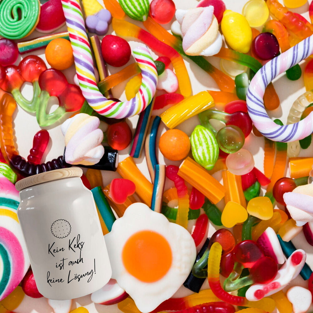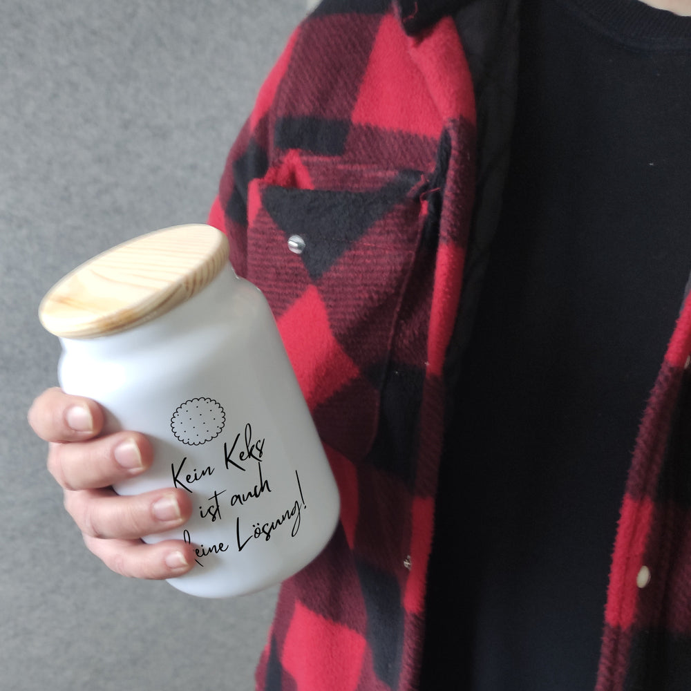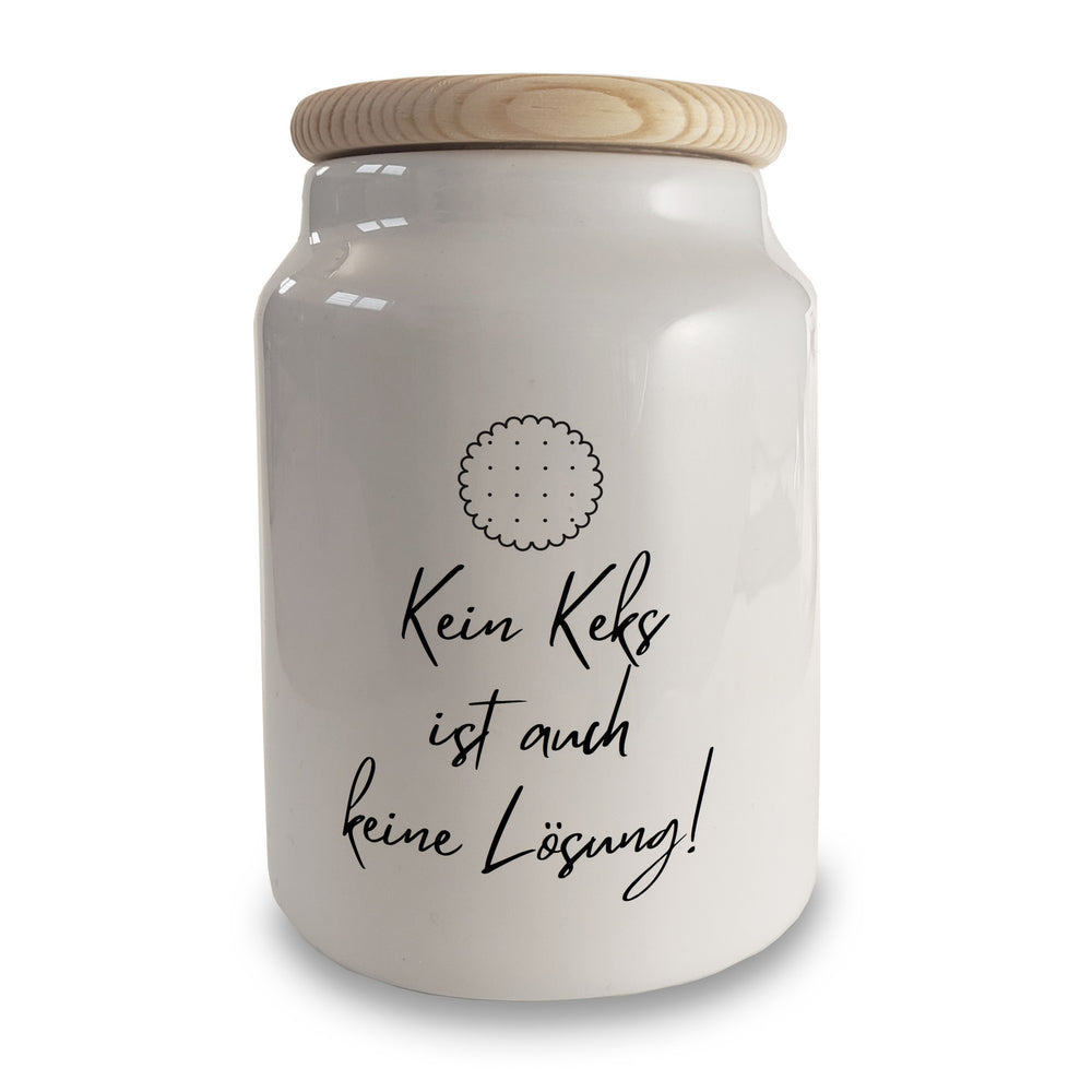 Kein Keks ist auch keine Lösung! Keksdose aus Keramik mit Holzdeckel