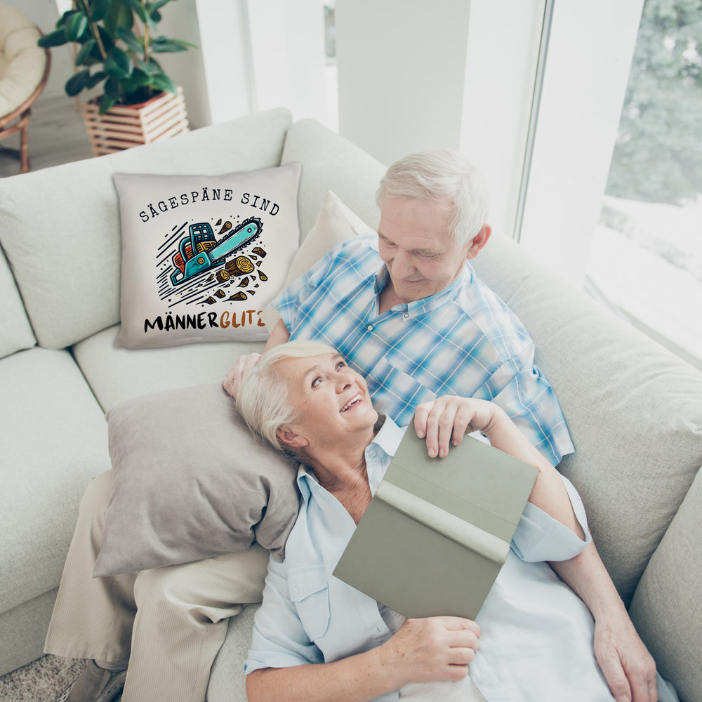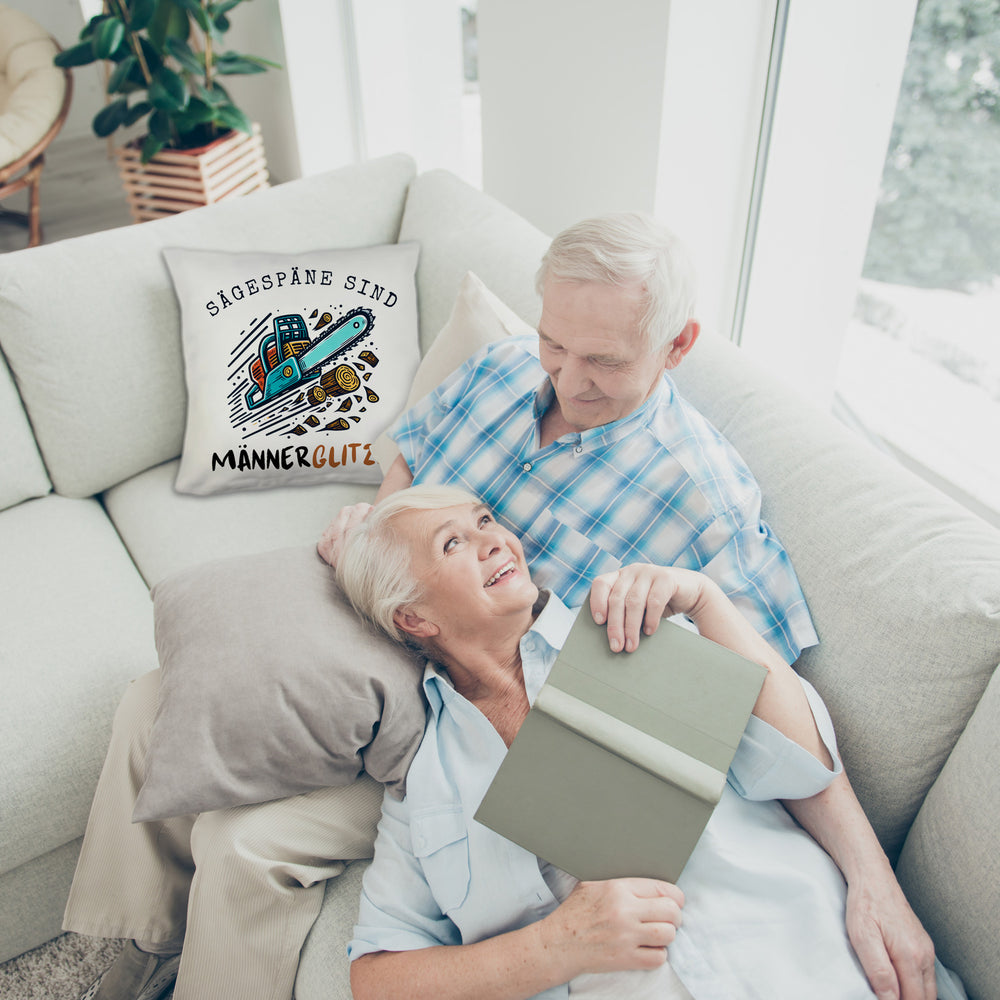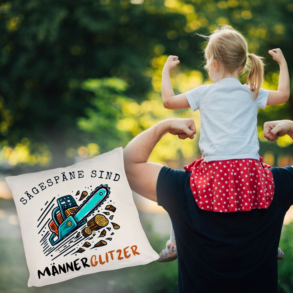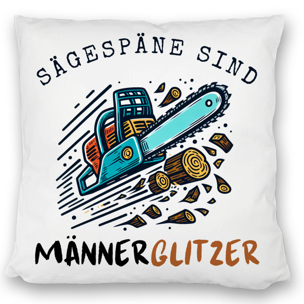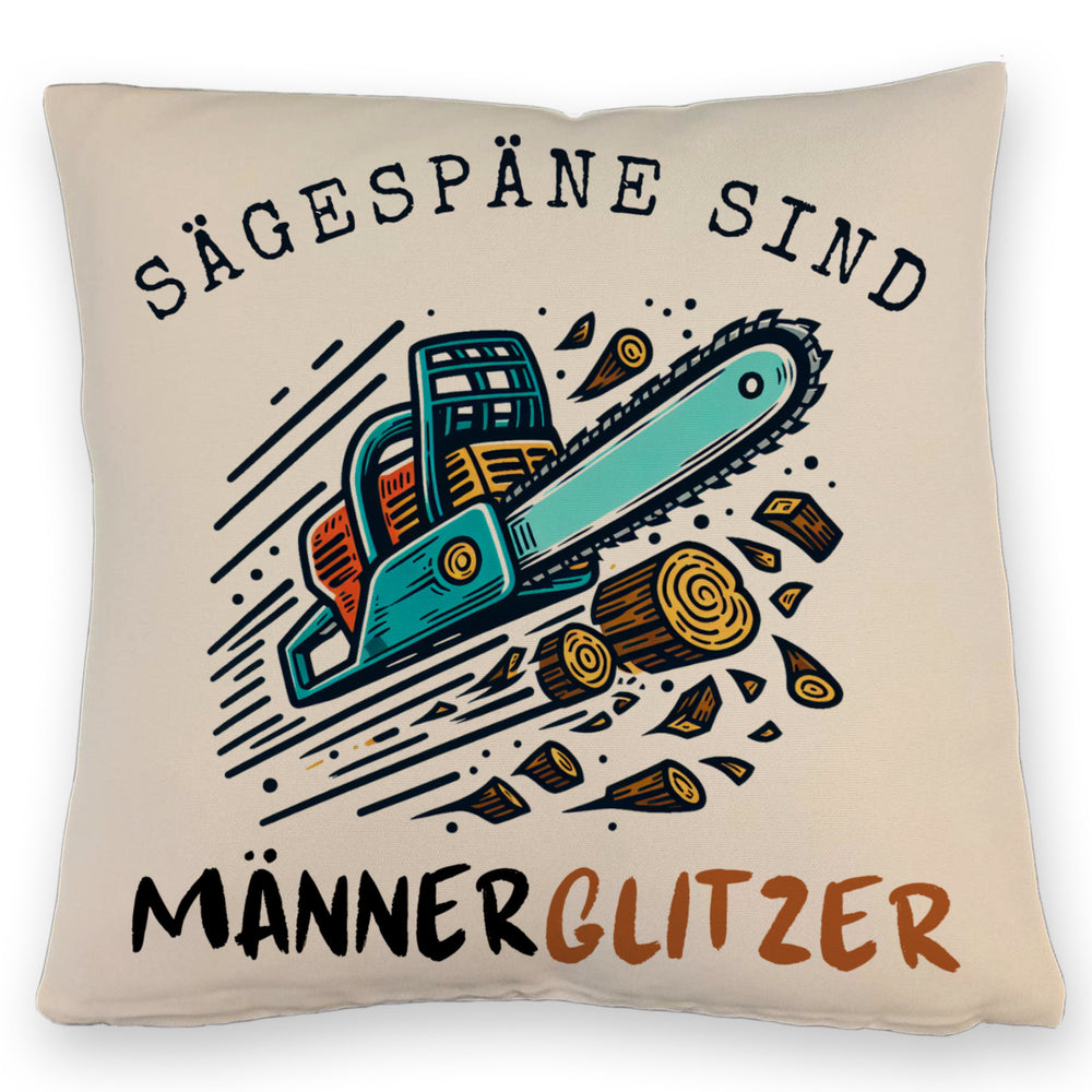 Kettensäge Kissen mit Spruch Sägespäne sind Männerglitzer