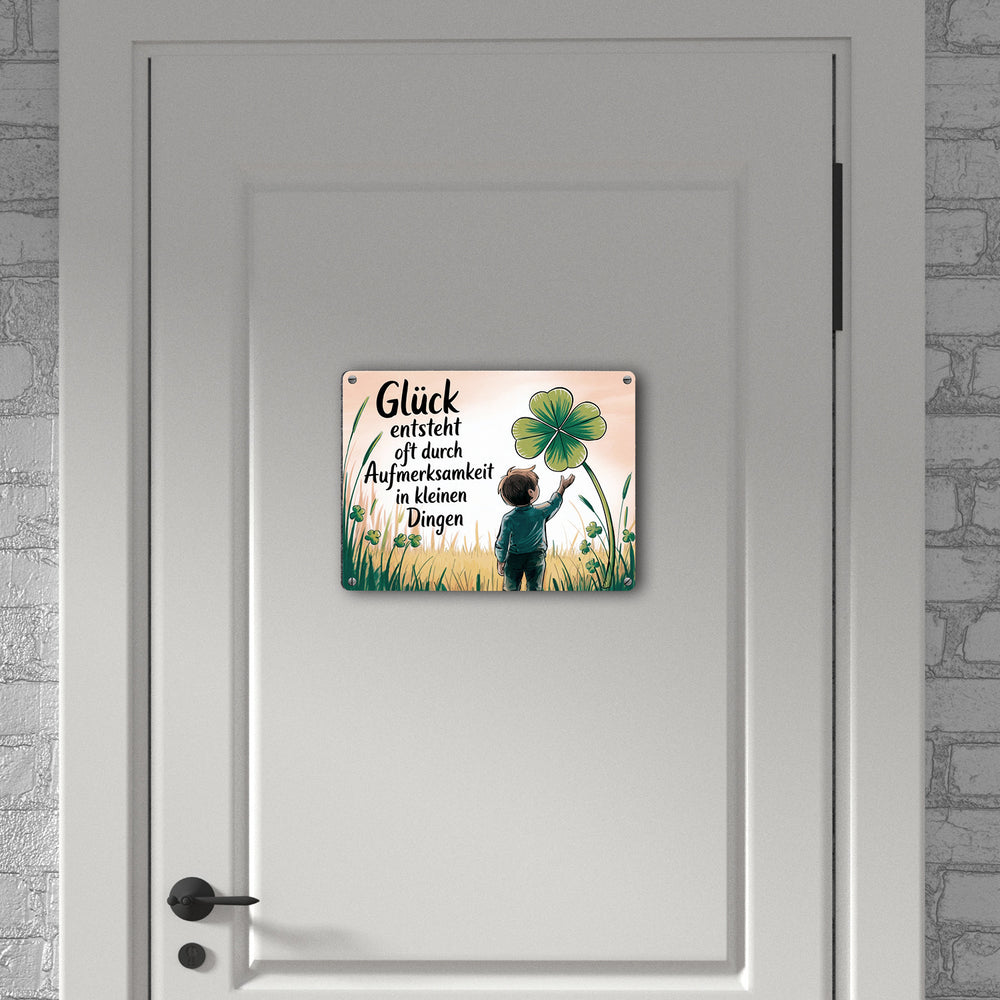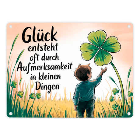 Kind mit Kleeblatt Metallschild in 15x20 cm - Glück durch kleine Dinge