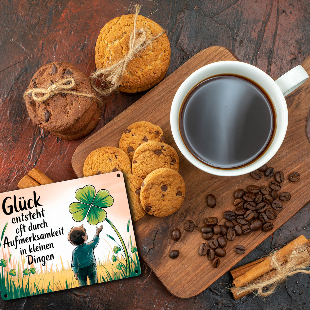 - 1x Kind mit Kleeblatt Metallschild in 15x20 cm - Glück durch kleine Dinge in der gewählten Größe