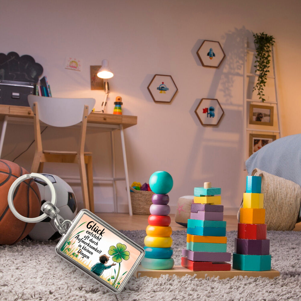 - 1x Kind mit Kleeblatt Schlüsselanhänger - Glück durch kleine Dinge in der gewählten Ausführung