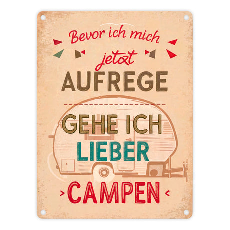 Camping Metallschild in 15x20 cm - Lieber Campen als aufregen