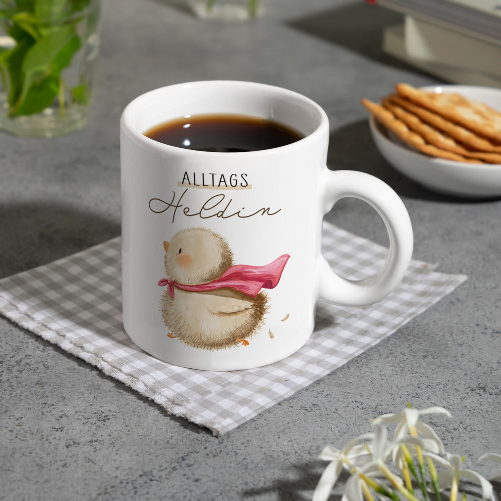 Küken Kaffeebecher mit Spruch Alltagsheldin - Weiß ist auf Lager und wird versandt, sobald es wieder verfügbar ist
