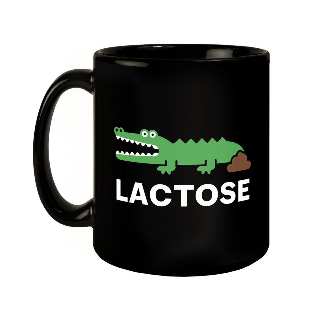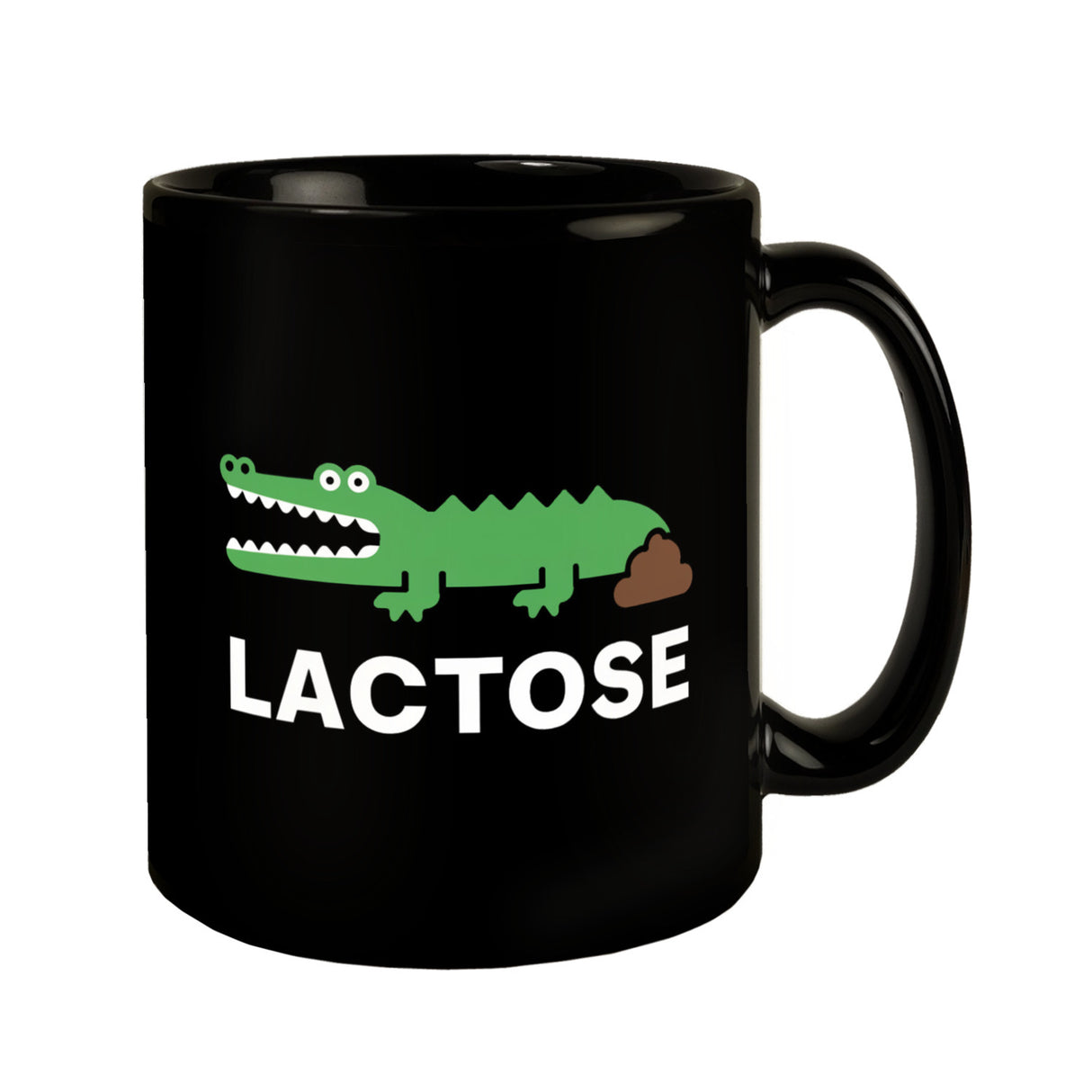 - Diese humorvolle Kaffeetasse in Schwarz sorgt garantiert für Lacher! Mit einem grünen Alligator, der frech "LACTOSE" verkündet und seinen eigenen Haufen produziert, ist sie ein witziger Hingucker auf jedem Schreibtisch. Ein humorvolles Spiel mit Laktoseintoleranz und parodiert eine bekannte Krokodilsmarke - perfekt für jeden, der Humor mag!