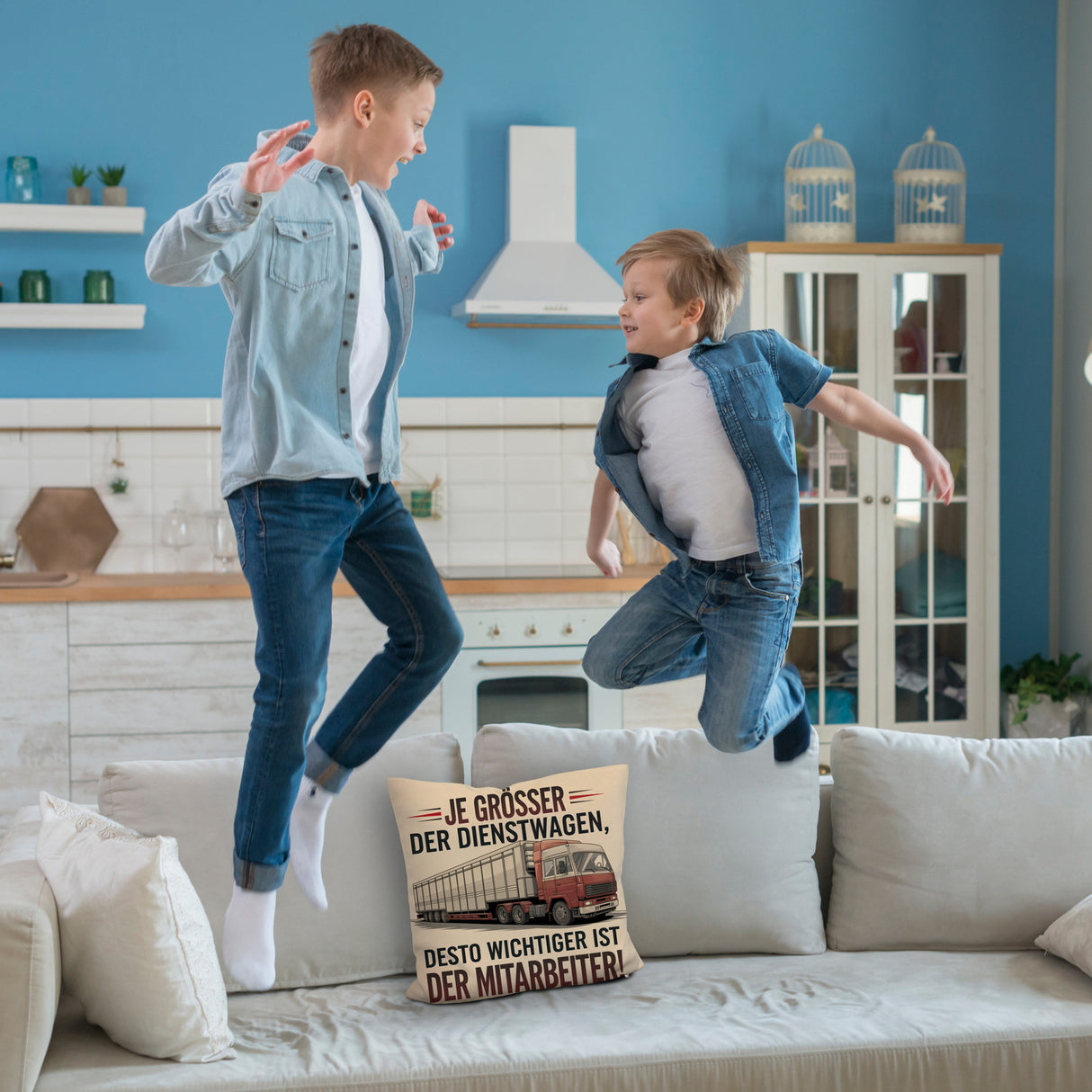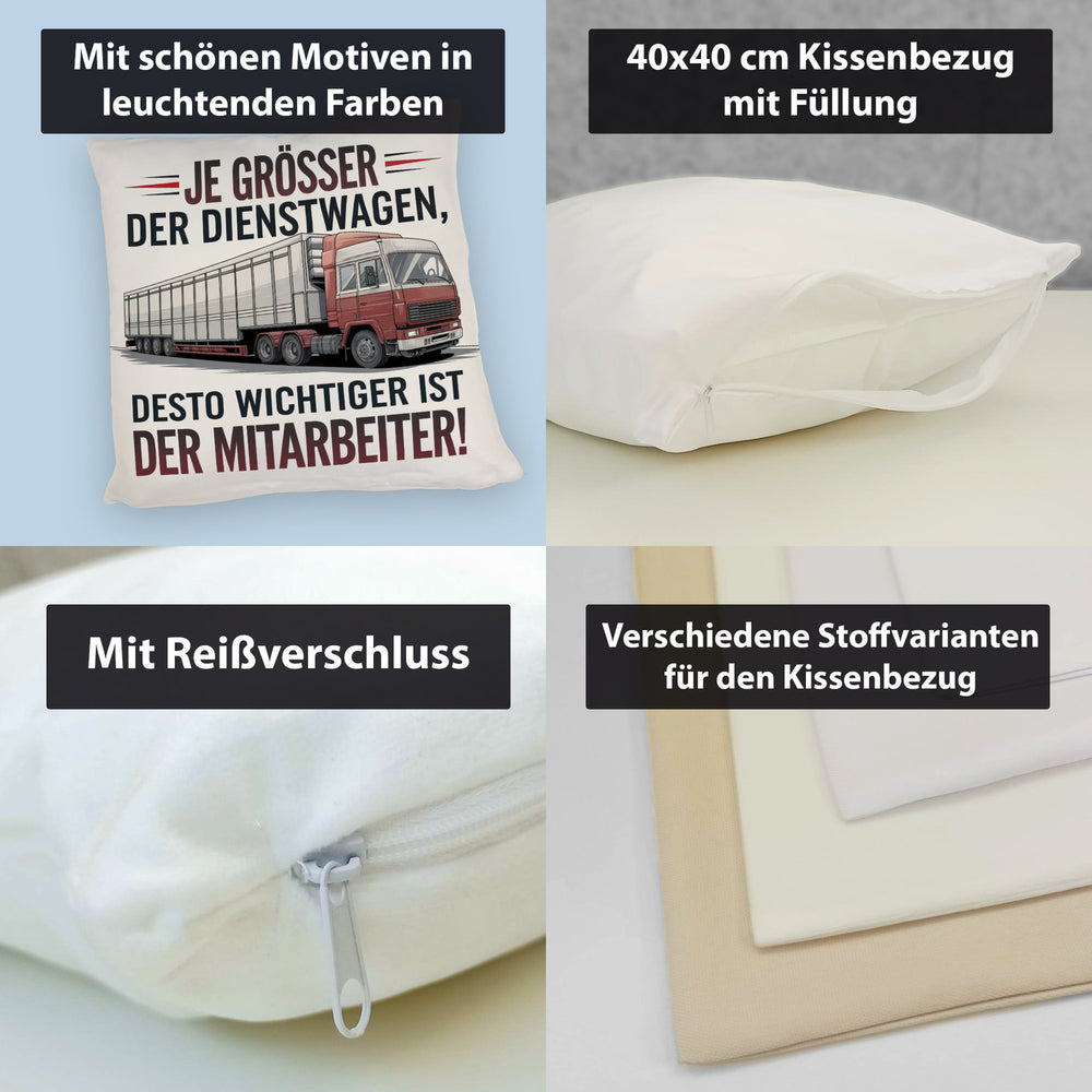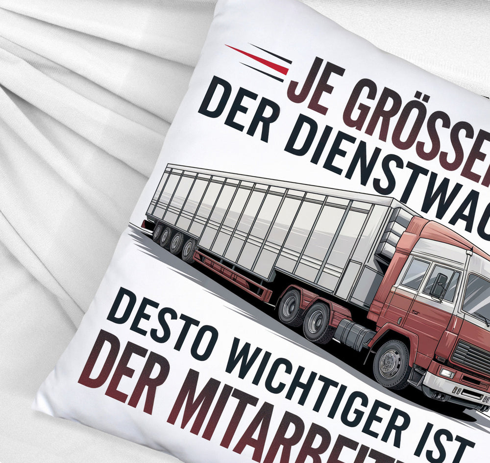 - 1x Lastwagen mit Anhänger - Wichtiger Mitarbeiter Kissen in der gewählten Ausführung