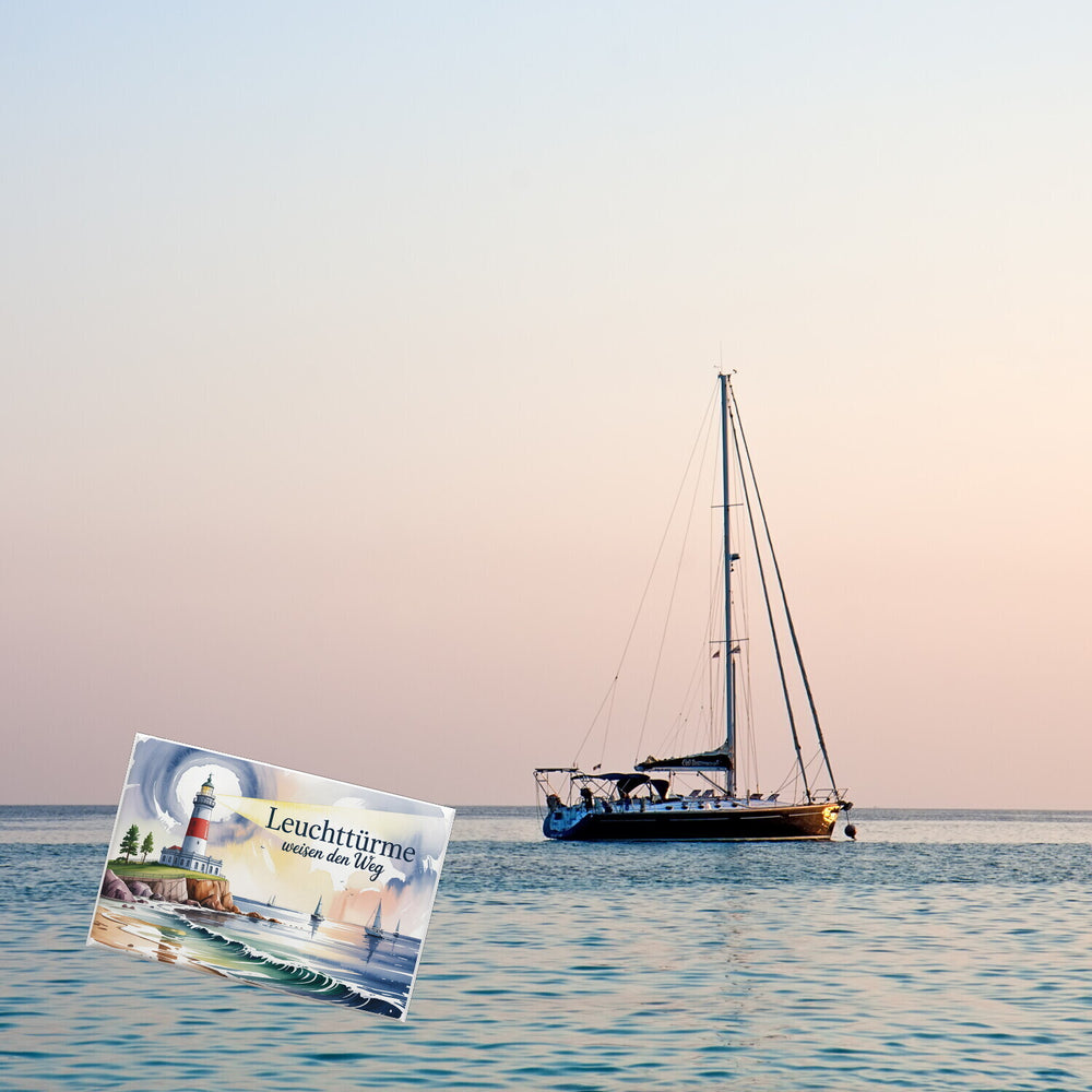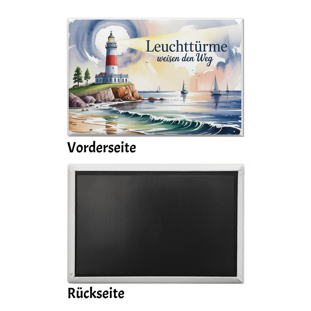 - Entdecken Sie die beruhigende Schönheit der Nordsee mit unserem Souvenir-Magneten. Ein majestätischer Leuchtturm thront auf einem felsigen Vorsprung, während sanfte Wellen gegen das Ufer schlagen. Das Aquarell-Design zeigt elegante Segelboote im diffusen Licht, vervollständigt durch den inspirierenden Spruch: "Leuchttürme weisen den Weg".