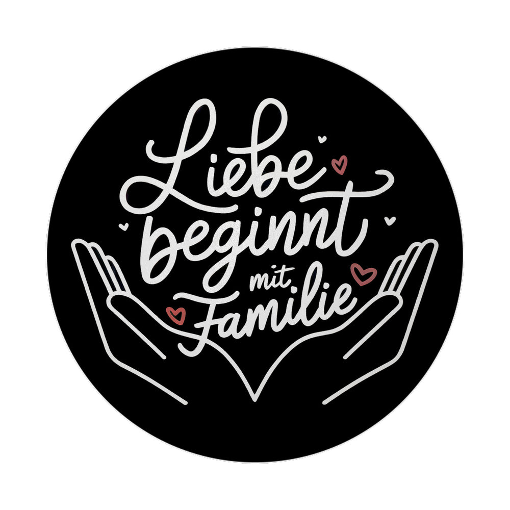 - Magnetische Magie trifft auf Familienbande! Unser runder Magnet "Liebe beginnt mit Familie" zaubert mit schwarzem Hintergrund und weißem Text ein Lächeln auf jedes Gesicht. Mit charmanten Herzsymbolen und eleganter Schrift wird dieser Magnet zum stilvollen Statement für eure Kühlschrank-Tür oder Magnetwand.