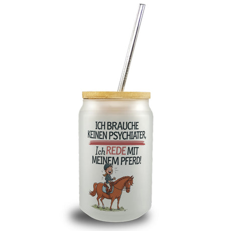Brauche keinen Psychiater Trinkglas mit Bambusdeckel Rede mit meinem Pferd