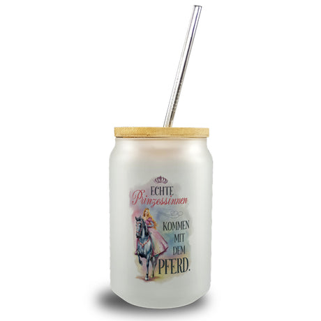 Echte Prinzessinnen reiten Pferde Trinkglas mit Bambusdeckel