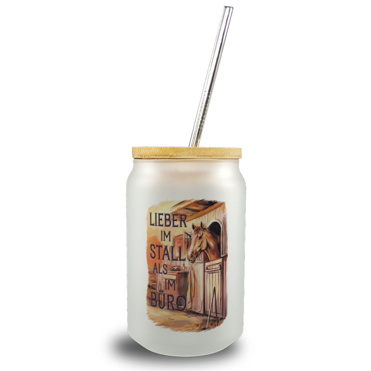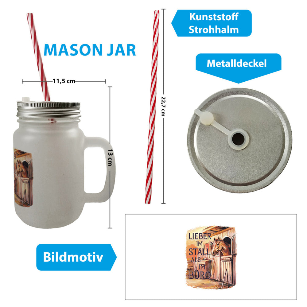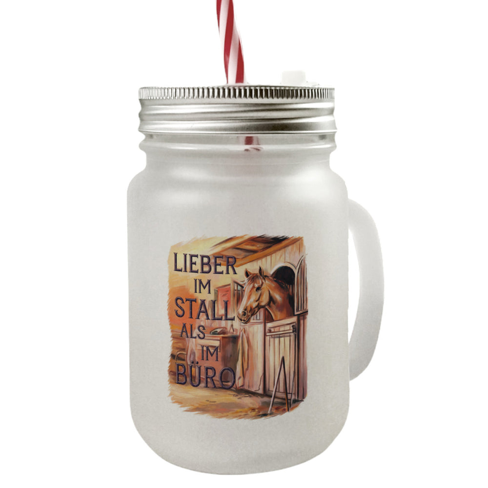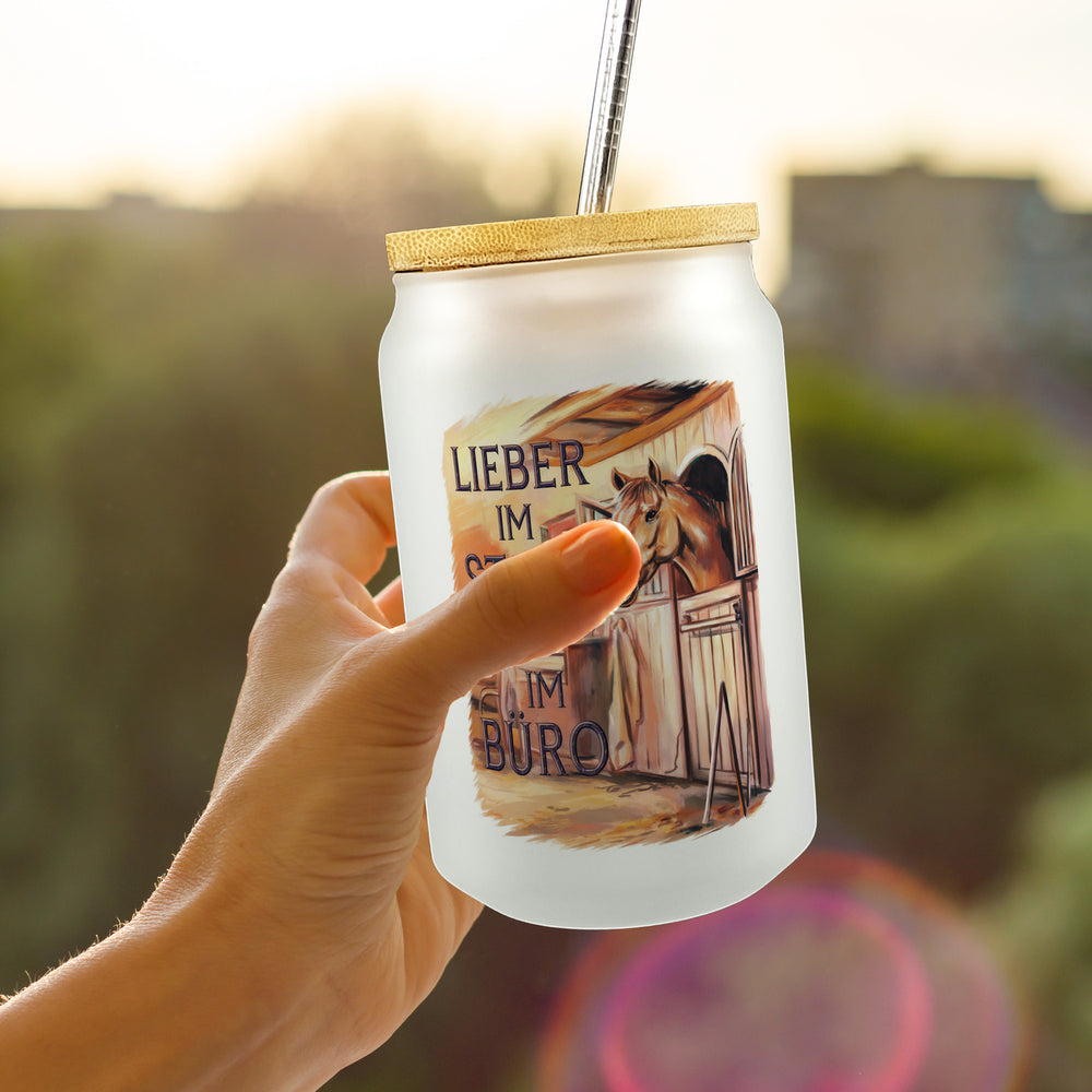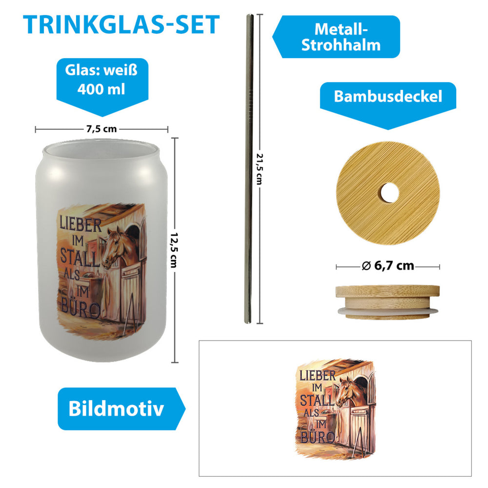 - 1x Lieber im Stall als im Büro Trinkglas mit Bambusdeckel Pferdemädchen mit Bambusdeckel oder Henkel