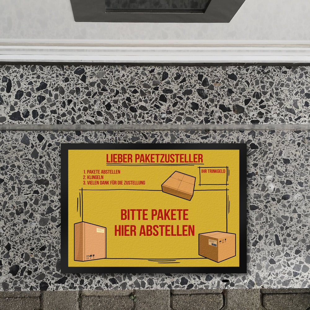 - 1x Lieber Paketzusteller Fußmatte mit Paket Motiv und Trinkgeld-Feld für den Paketboten in der gewählten Größe