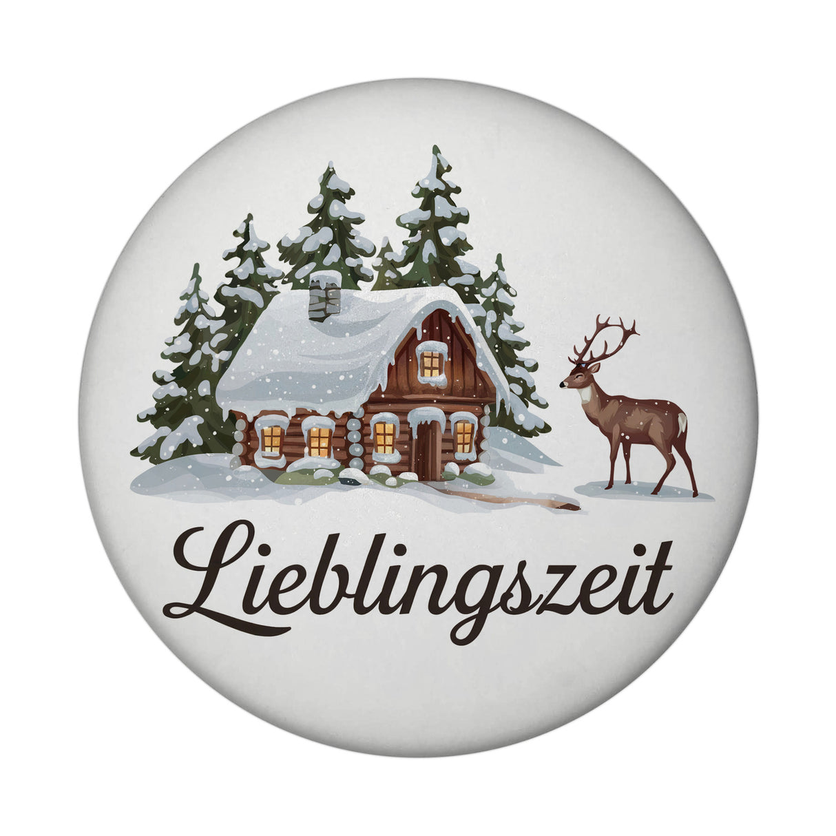 - Stellt euch vor, ihr öffnet euren Kühlschrank und begrüßt eine malerische Winterlandschaft! Der runde Magnet zeigt eine schneebedeckte Holzhütte, die warmes Licht ausstrahlt. Majestätische Kiefern und ein neugieriger Hirsch machen das Bild perfekt.