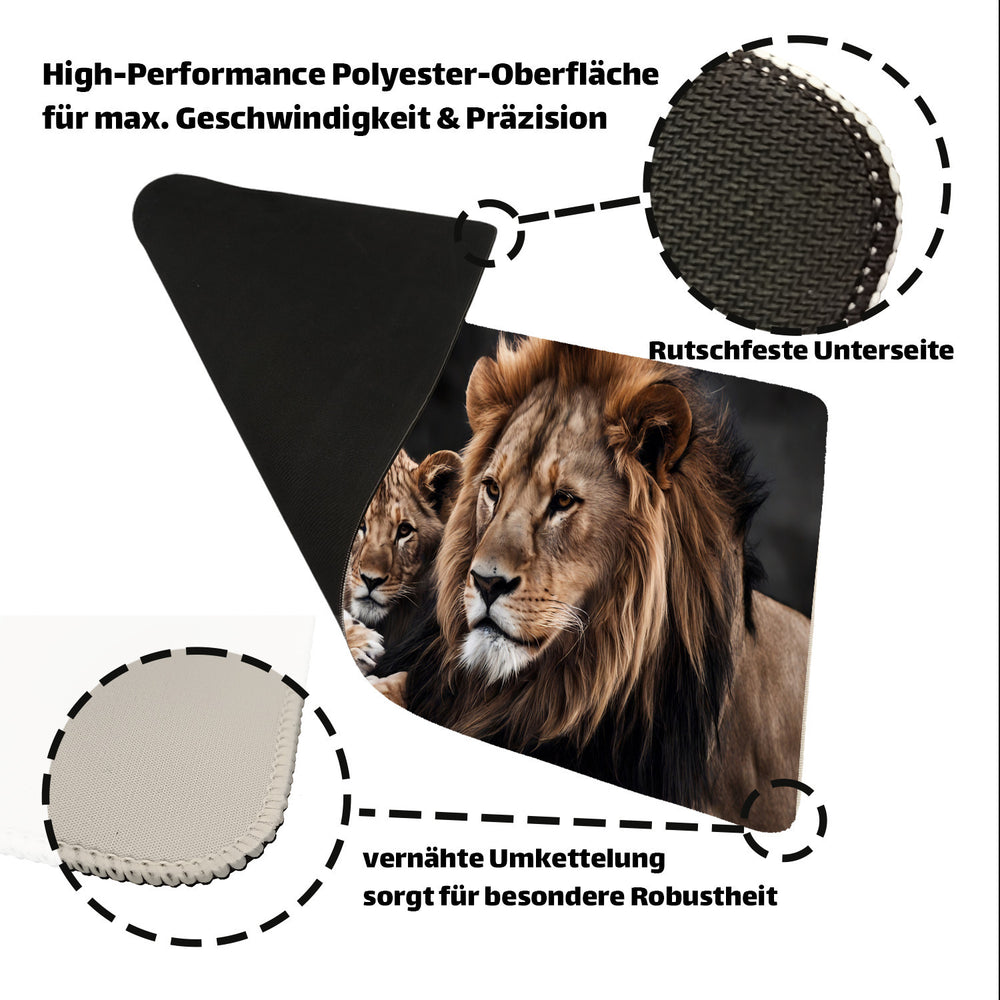 • 1x Löwen Schreibtischunterlage 69x31cm XXL Mauspad für Tierfreunde im Büro in der gewählten Größe