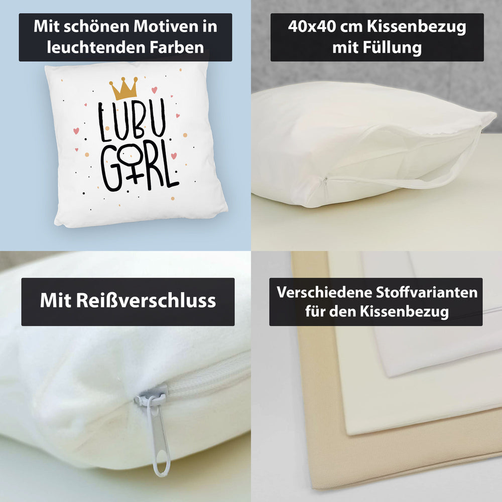 - 1x Ludwigsburg Kissen mit Spruch LUBU girl in der gewählten Ausführung