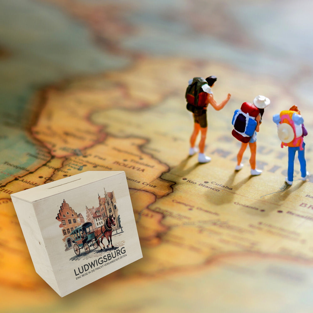 - 1x Ludwigsburg Reise Spardose Pferdekutsche auf Kopfsteinpflaster in der gewählten Ausführung