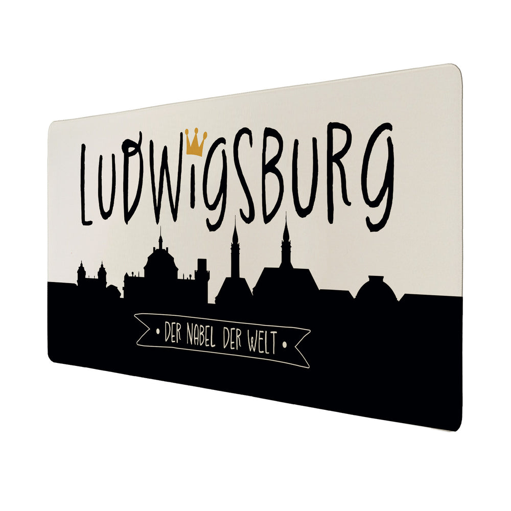 Ludwigsburg Skyline Schreibtischunterlage 69x31cm XXL Mauspad mit Spruch Nabel der Welt