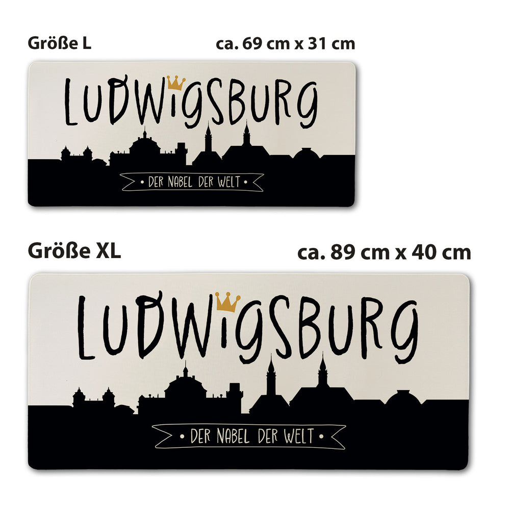 - 1x Ludwigsburg Skyline Schreibtischunterlage 69x31cm XXL Mauspad mit Spruch Nabel der Welt in der gewählten Größe