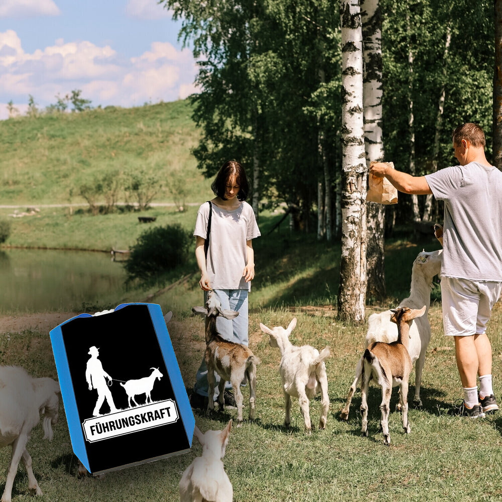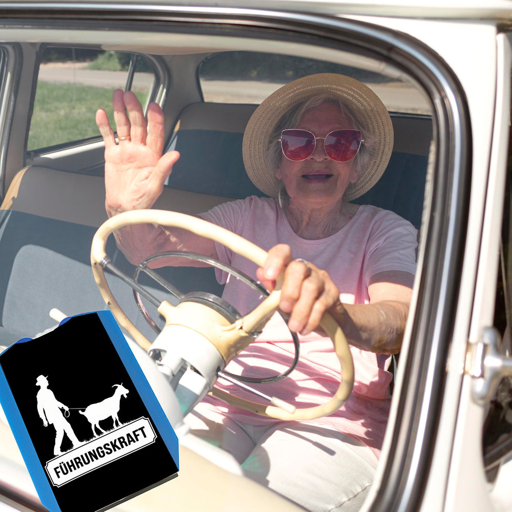 - Die humorvollen Details dieser Parkscheibe sprechen Bände! Während der Mann mit Hut seine Ziege stolz durch den Park führt, sorgt der fetzige Schriftzug „FÜHRUNGSKRAFT“ für Lacher. Warum sollte man nicht seine humorvolle Seite zeigen, während man versucht, einen Parkplatz zu finden? Und hey, Ziegenhüter sind schließlich die besten Führungskräfte!