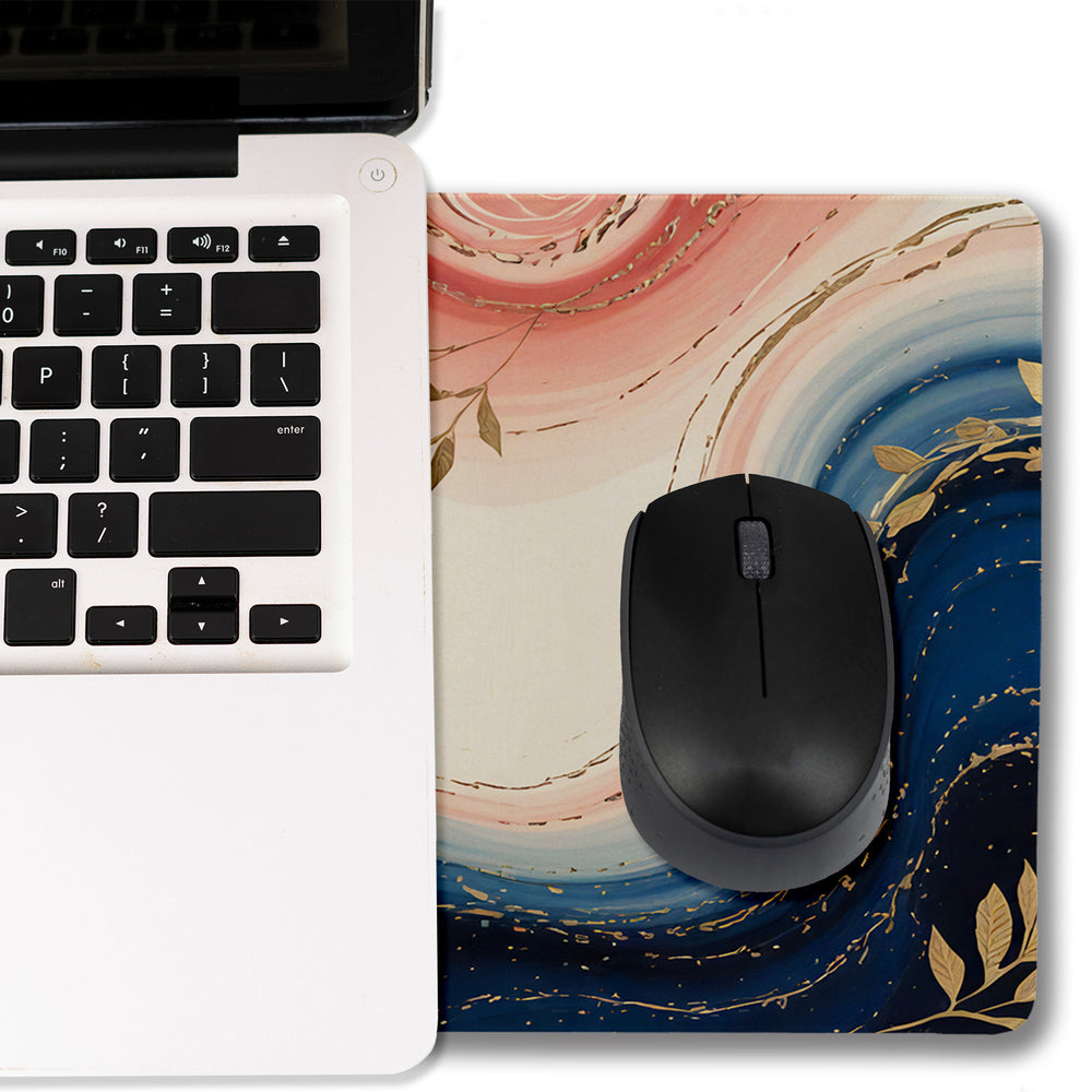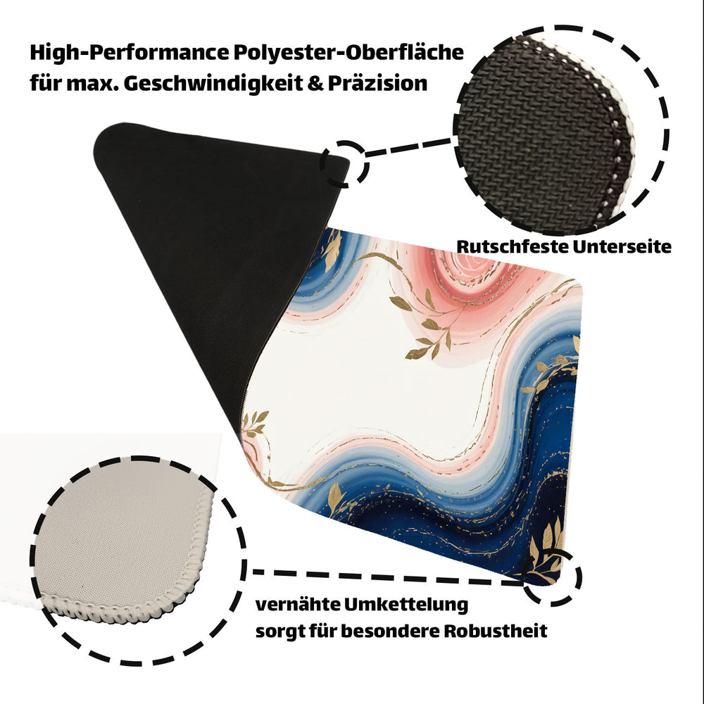 - Diese Marmor Designer Schreibtischunterlage ist pure Eleganz! Marineblau und zartes Rosa wirbeln in einem einzigartigen Marmor-Muster, durchsetzt mit goldenen Akzenten und stilvollen Blattmotiven. Das kunstvolle, quadratische Design verleiht deinem Arbeitsplatz einen luxuriösen Touch, der Dynamik und Kreativität ausstrahlt.