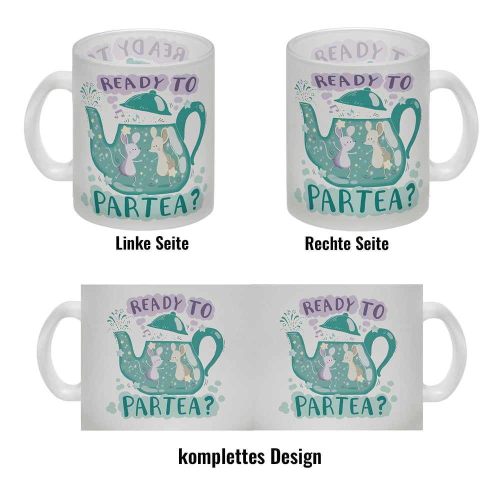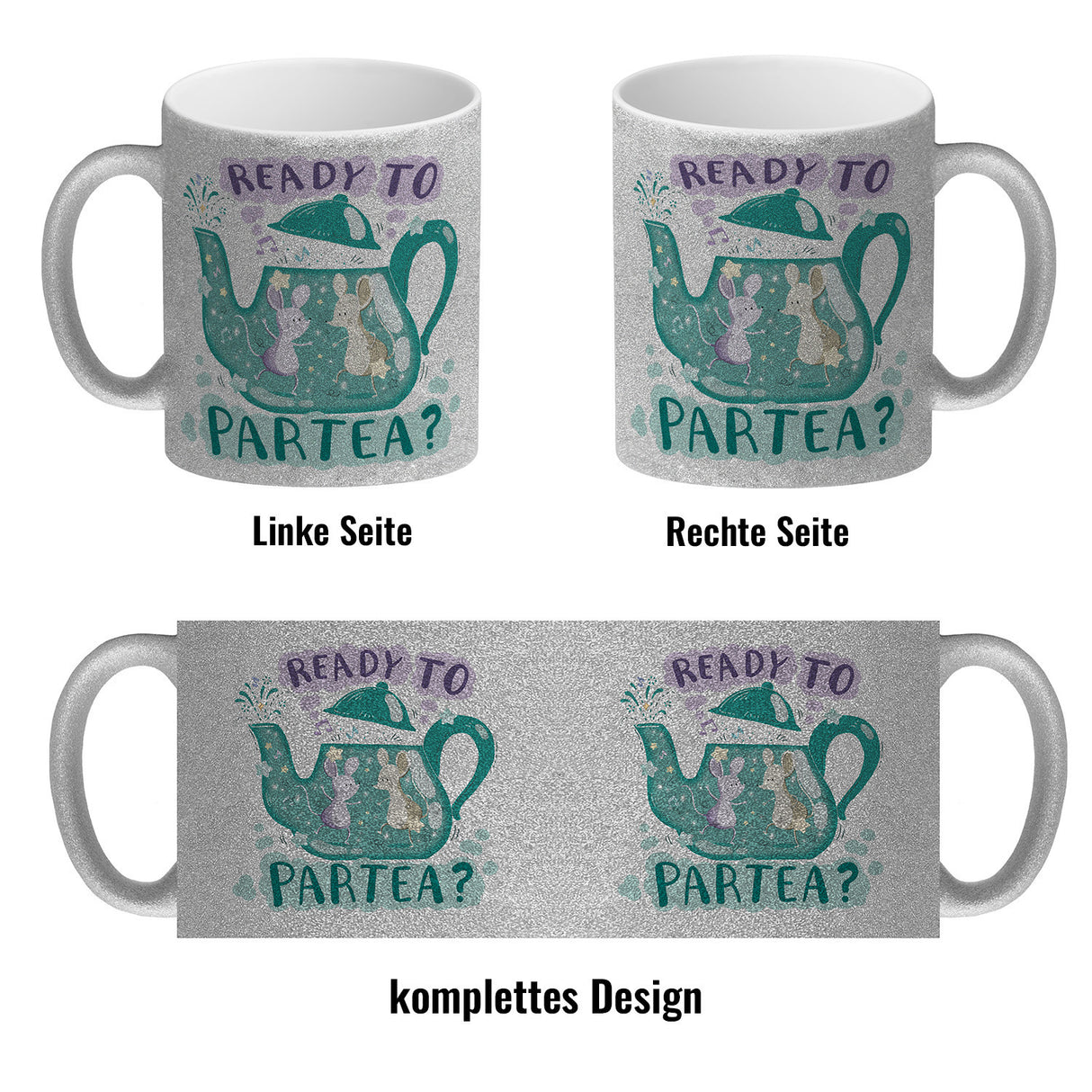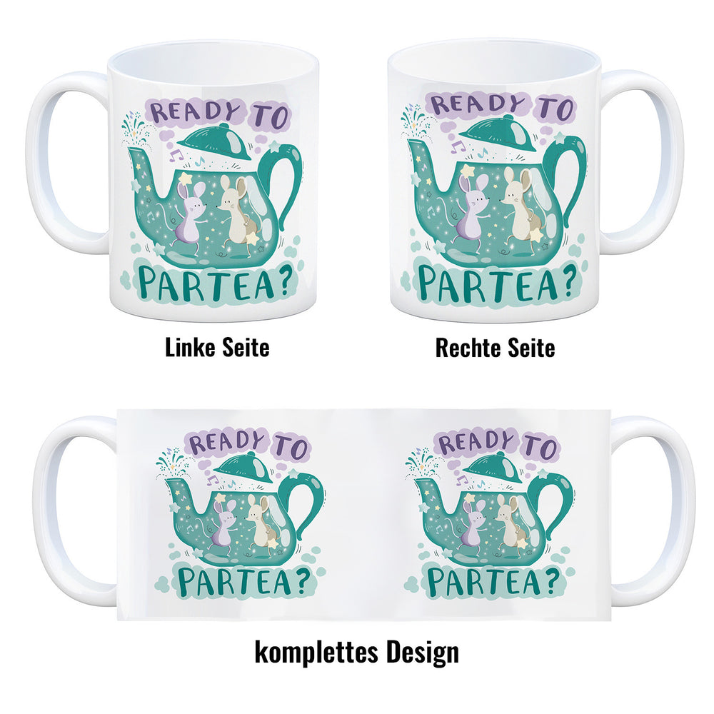 - 1x Mäuse in Teekanne Kaffeebecher mit Spruch Ready to Partea in der gewählten Ausführung