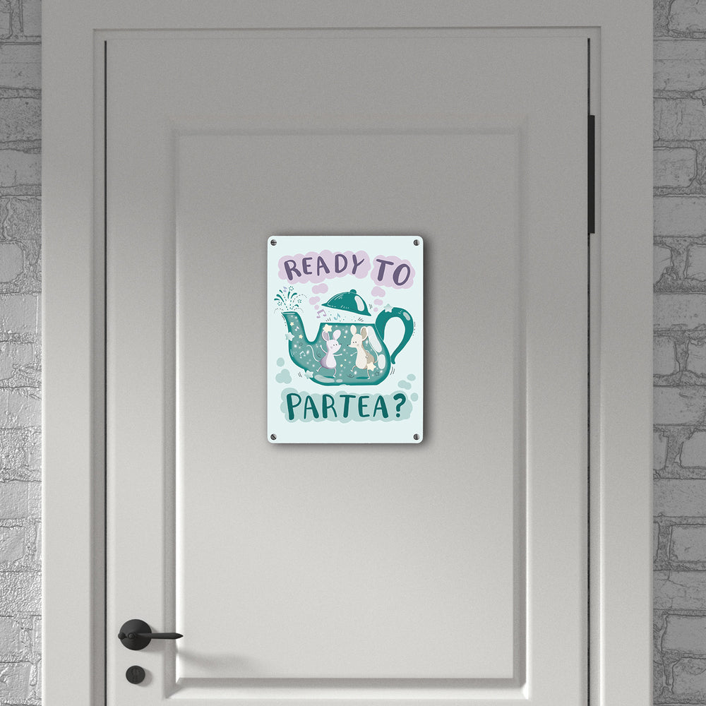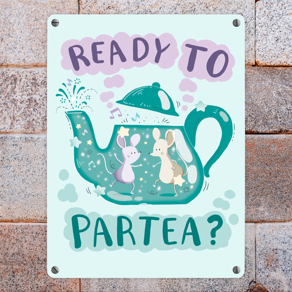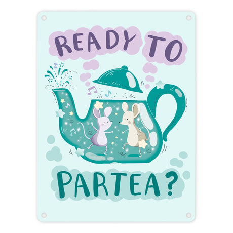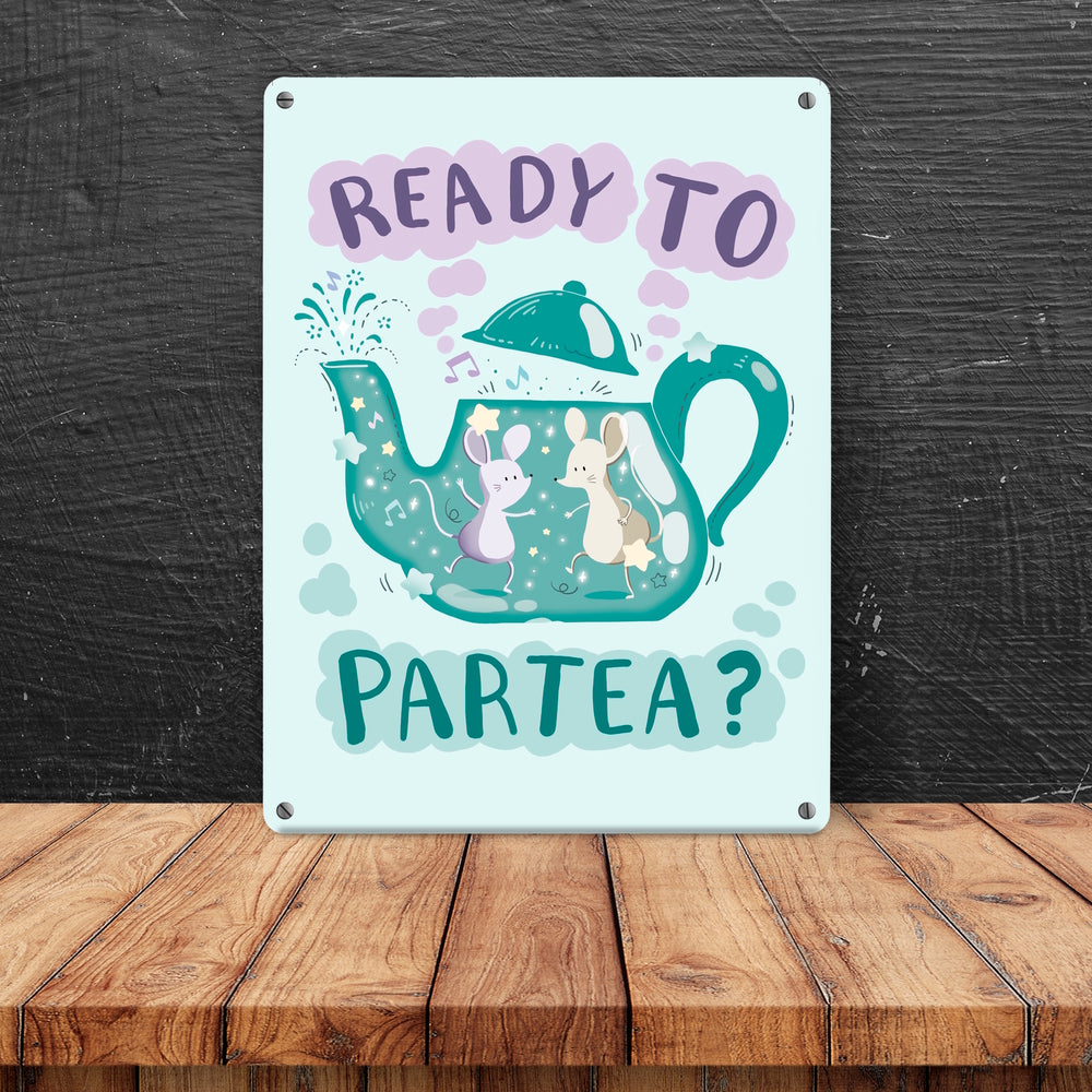 Mäuse in Teekanne Metallschild in 15x20 cm mit Spruch Ready to Partea