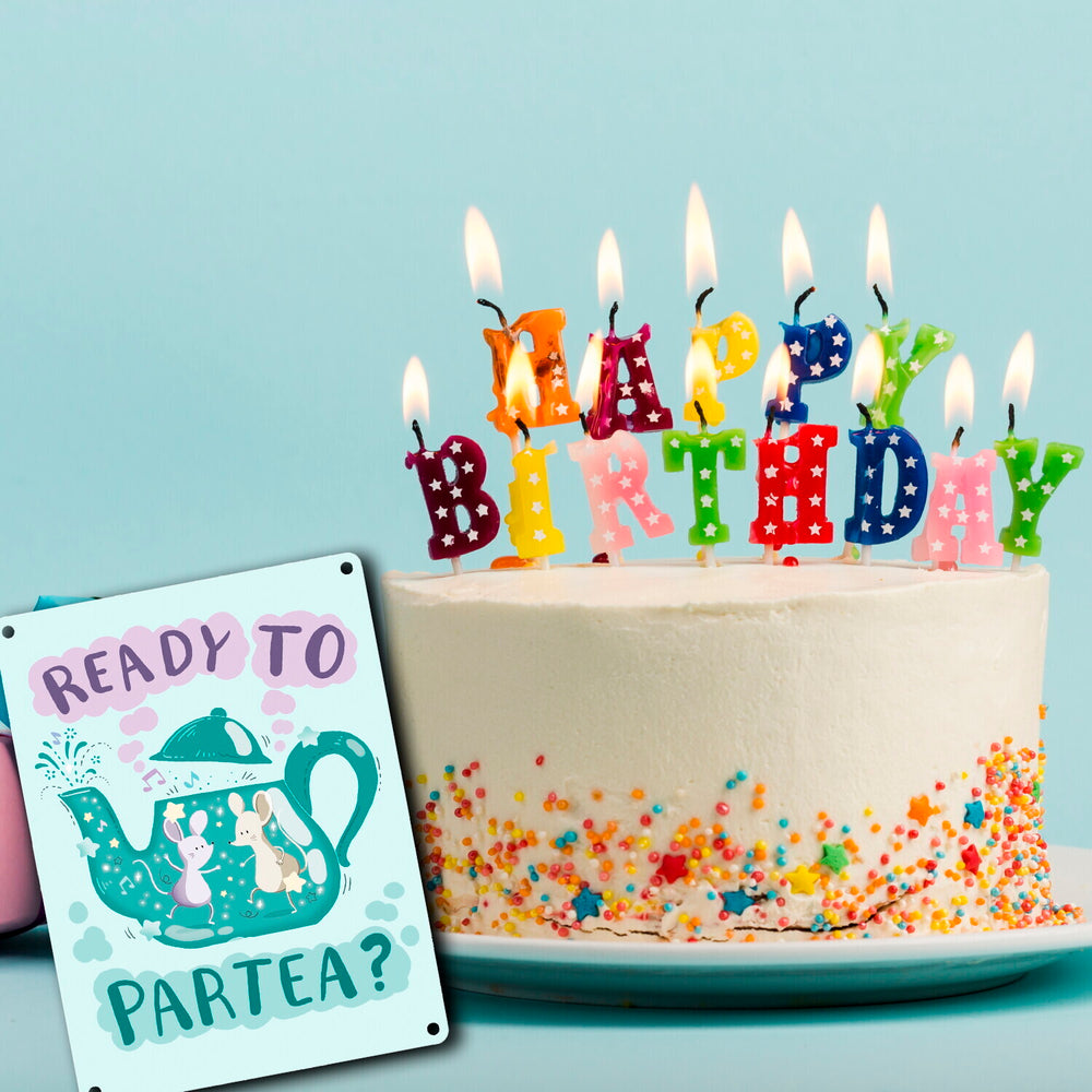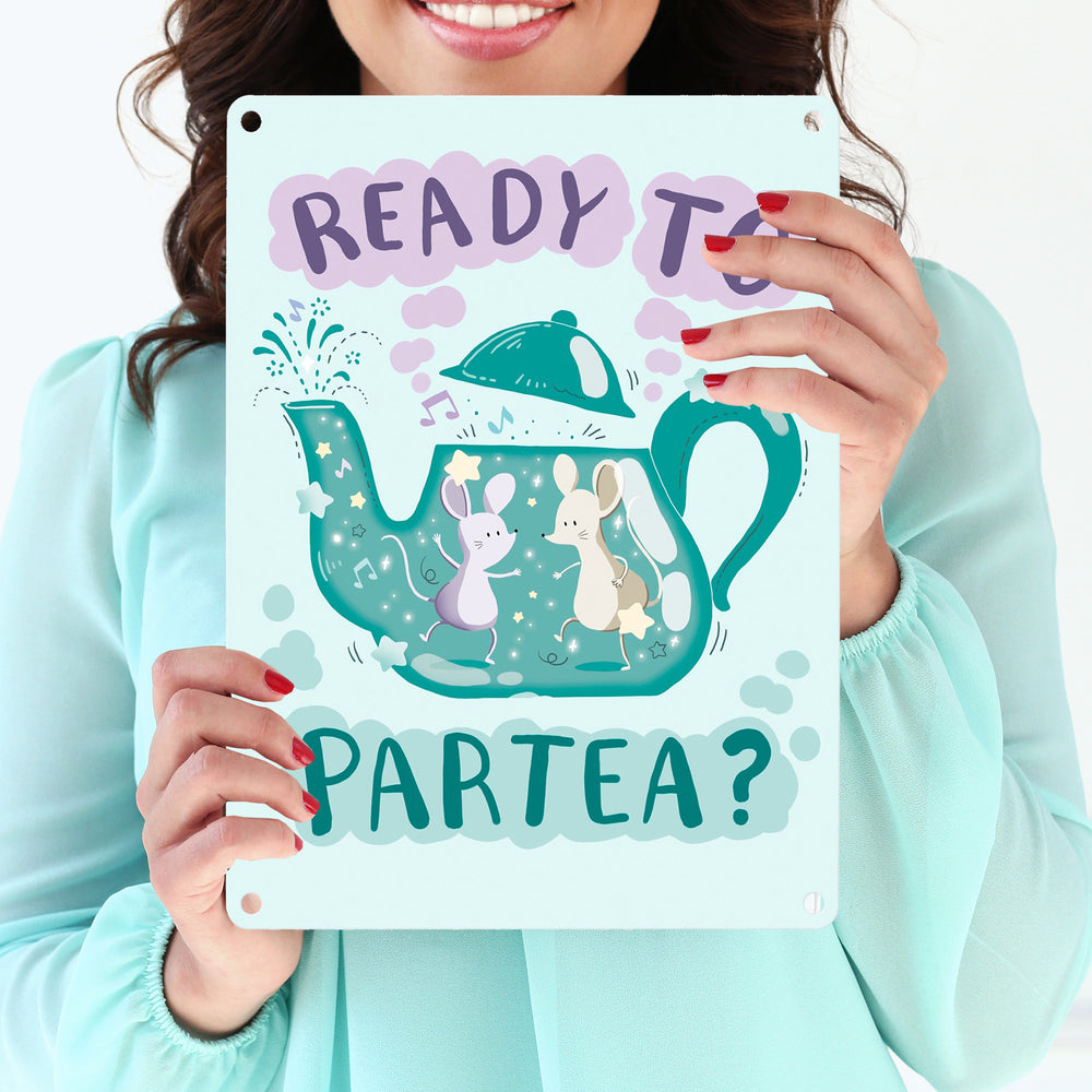 - 1x Mäuse in Teekanne Metallschild in 15x20 cm mit Spruch Ready to Partea in der gewählten Größe