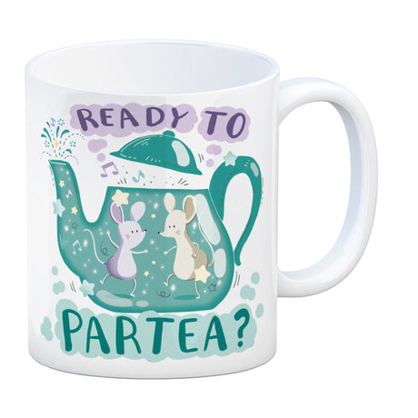 Mäuse in Teekanne Kaffeebecher mit Spruch Ready to Partea