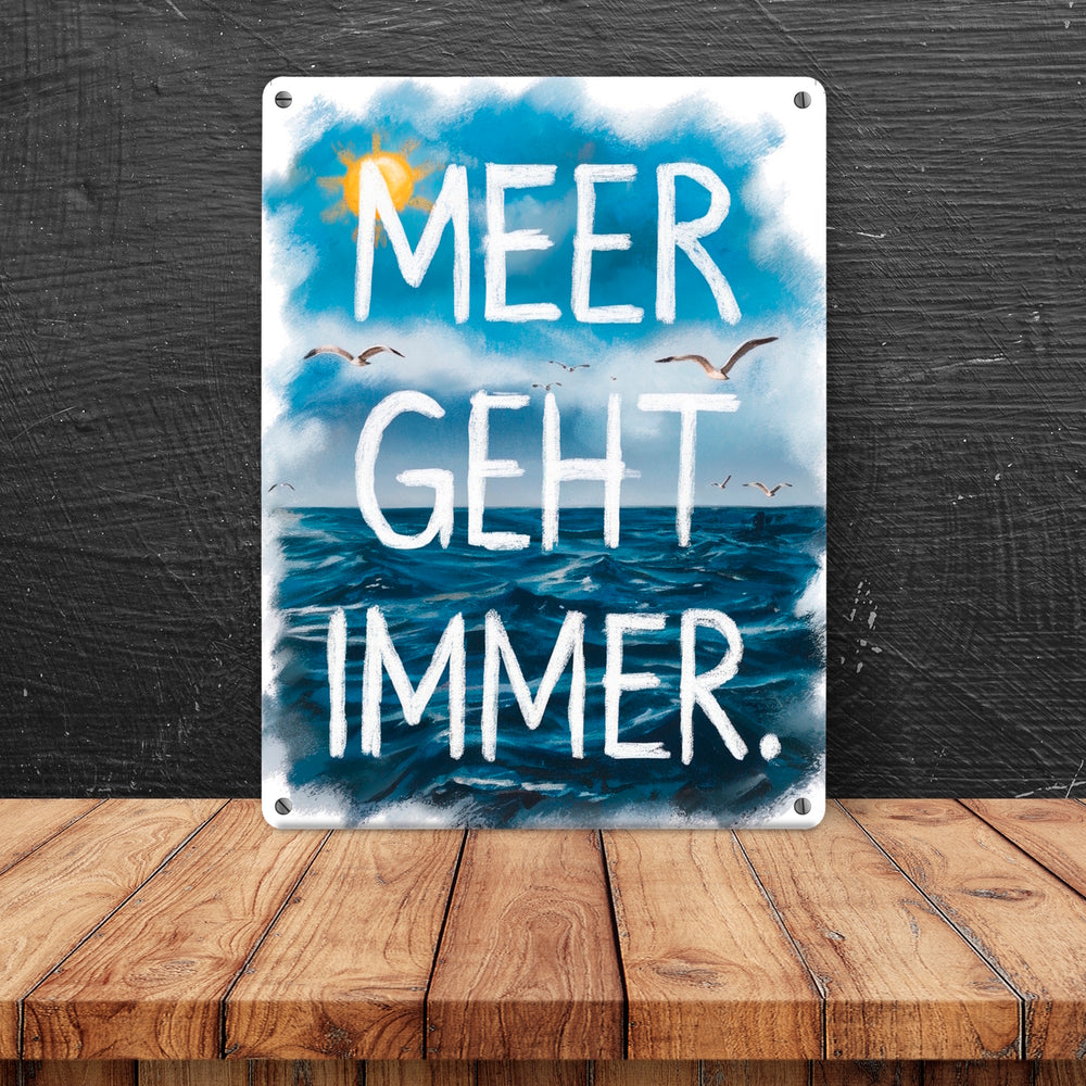 Meer geht immer Metallschild in 15x20 cm im Aquarell Design - 15x20 cm ist auf Lager und wird versandt, sobald es wieder verfügbar ist