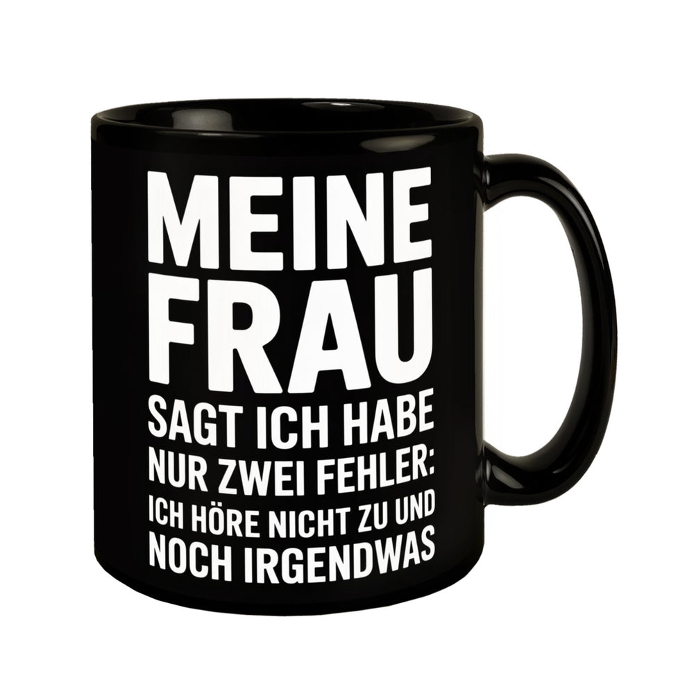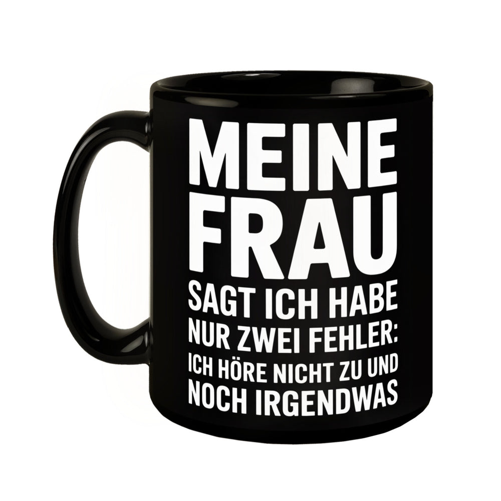 - Lieferumfang: 1x Meine Frau sagt ich habe nur zwei Fehler Tasse - Ich höre nicht zu und noch was